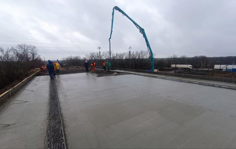 Вчора дорожники розпочали заливати монолітну плиту та паралельно проводити роботи на підʼїздах до споруди.
