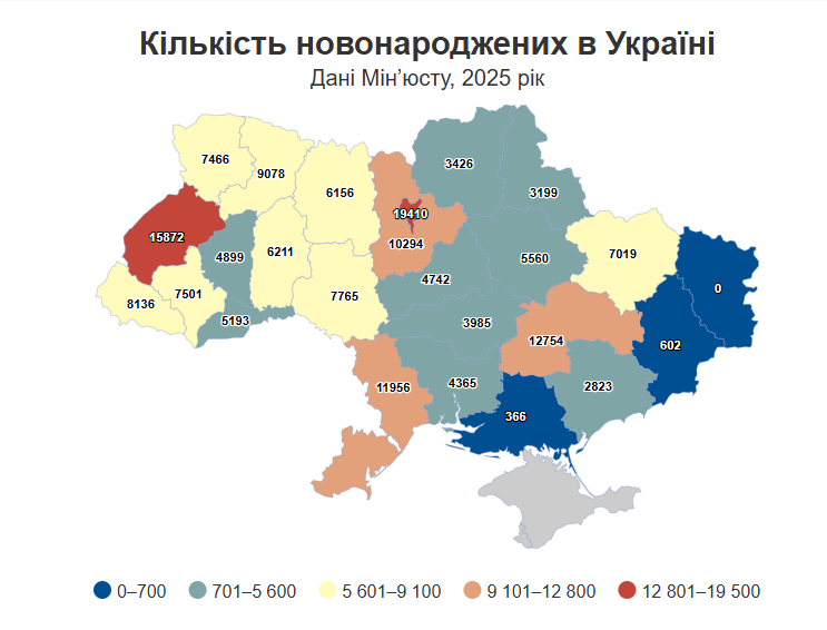 Найменше немовлят — там, де вiйна поруч: Херсонська, Запорiзька, Харкiвська областi.