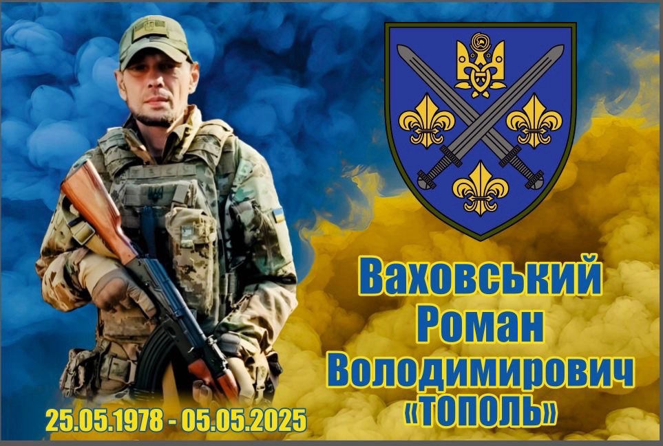 Солдат Роман Ваховський, стрiлець-номер обслуги механiзованого вiддiлення, прийняв свiй останнiй бiй 05 травня 2025 року, знищуючи росiйських окупантiв у районi населеного пункту Шевченкове Покровського району Донецької областi.