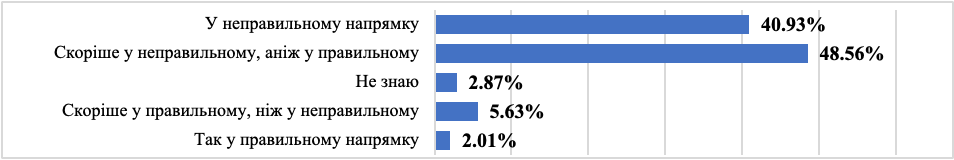 При цьому 51,80 % учасників дослідження окремо відзначили, що вважають неправильним вектор економічного розвитку країни.