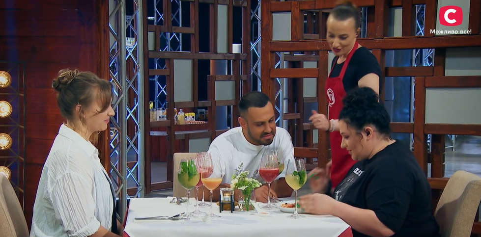 Ксенія в команді червоних офіціанткою і її відмітили за гарну комунікацію. Але й в неї не обійшлося без помилок: вона випустила з виду, що одна з блогерок лишилася без основної страви.