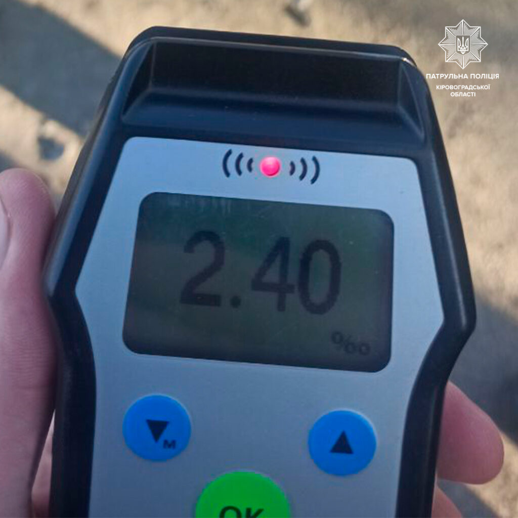 Пiд час патрулювання iнспектори зупинили за порушення ПДР автомобiль ВАЗ 2101. Спiлкуючись з водiєм, полiцейськi виявили у нього ознаки сп’янiння. Перевiрка за допомогою алкотестера Драгер показала 2,40 промiле, що у 12 разiв перевищило допустиму норму.
