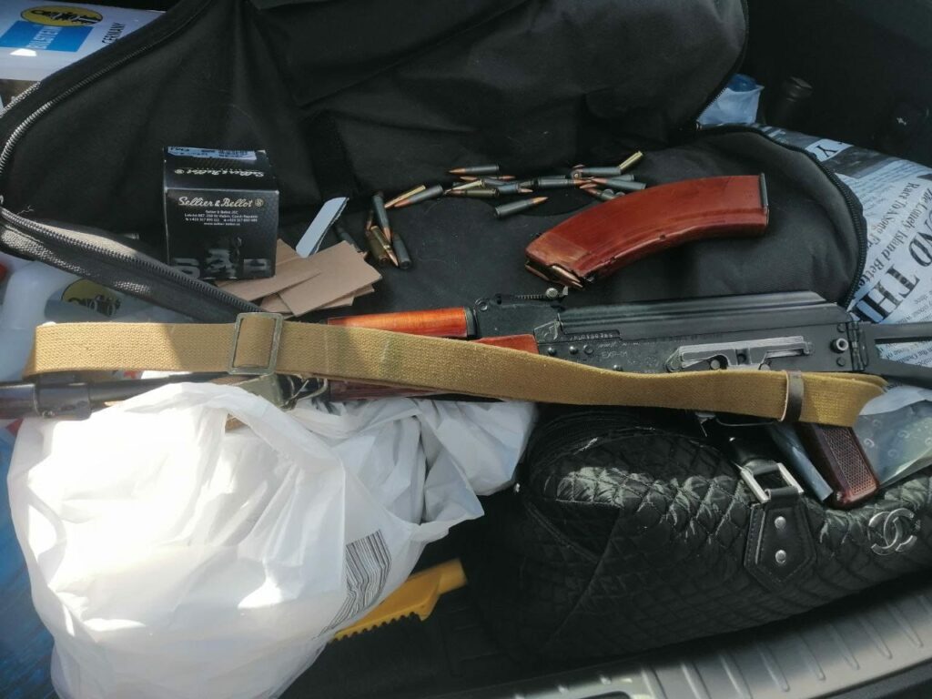 Iнший громадянин, який ранiше притягався до вiдповiдальностi за двома статтями Кримiнального кодексу України, провозив у багажнику вогнепальну зброю з набоями, яка значилася у базi даних як втрачена.