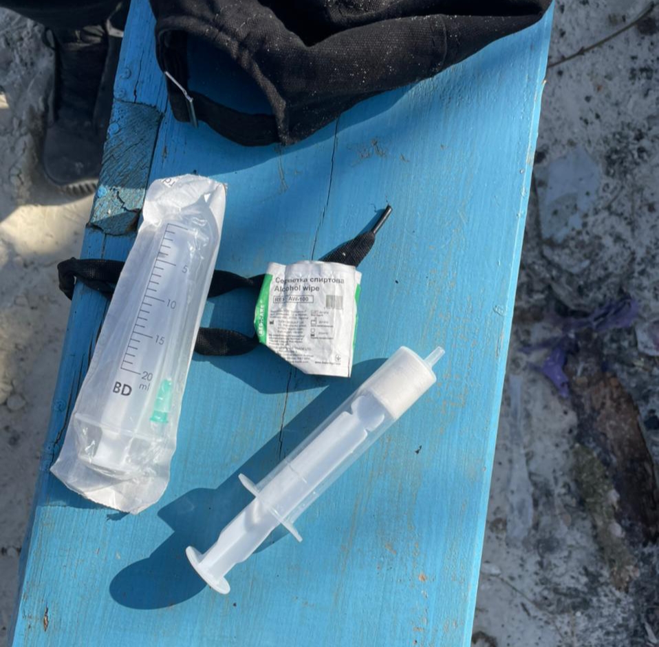 Ще один громадянин був затриманий з наркотичними речовинами. Вiн привернув увагу гвардiйцiв коли намагався обiйти блокпост. Пiд час поверхневої перевiрки у нього виявили шприц то згортки з порошкоподiбною речовиною.