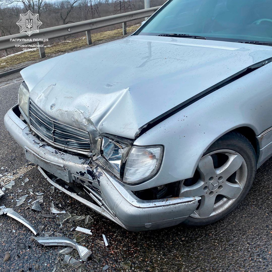 Водій легковика Mercedes-Benz не вибрав безпечну швидкість руху, виїхав на смугу зустрічного руху, де здійснив зіткнення з автомобілем Mitsubishi, який рухався йому назустріч.