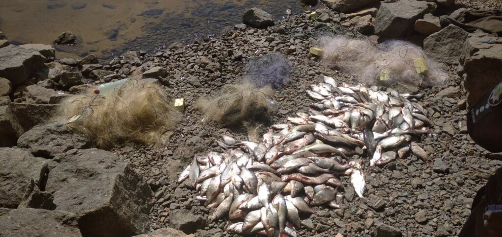 Всього з води було вилучено 4 сiтки загальною довжиною 280 метрiв. В них знаходились незаконно добута риба: судак звичайний, лящ, сом європейський, тарань, чехоня, синець звичайний, лоскирка, карась срiблястий, загальною вагою 58,200 кiлограми.