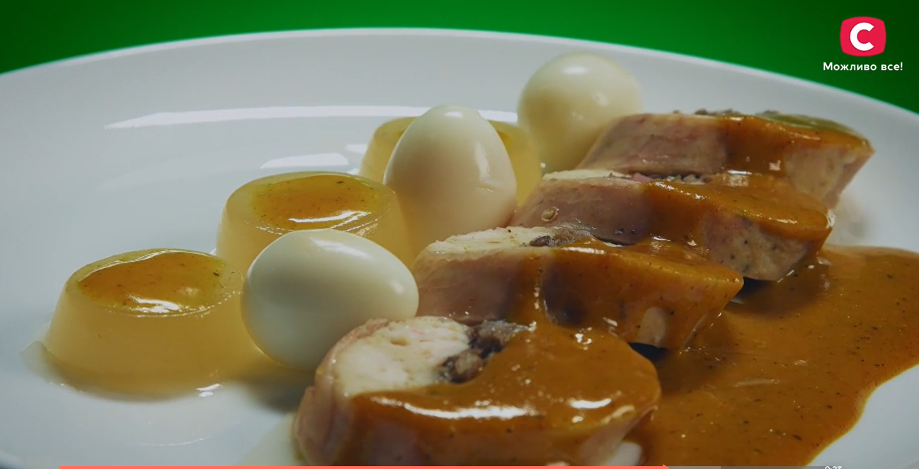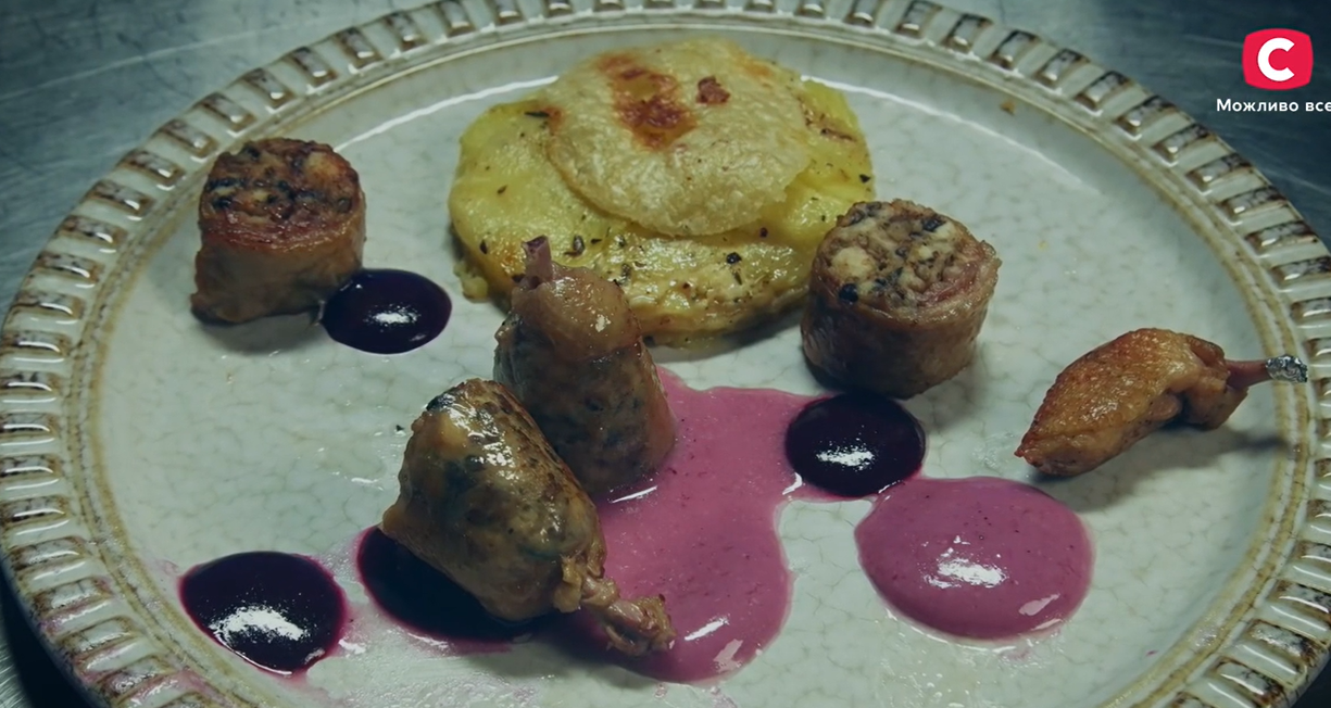 У першому конкурсі чотири команди мали приготувати галантин із перепілки, що вже саме по собі є складною справою. Адже один лише результат зрізання шкіри перепілки може вплинути на фінальний вигляд усієї страви.