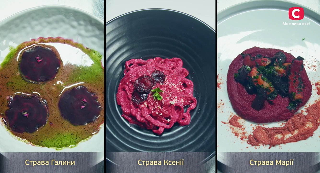 Ксенія обрала буряк. І в неї був найбільш яскравий публічний виступ, тому буряк отримав найбільше – 8 голосів. А Ксенія отримала зайві 15 хвилин для приготування страви. Але її паста з буряка вийшла сируватою і пармезан був там недоречним. Ксенія отримала купу критики від суддів та чорний фартух.