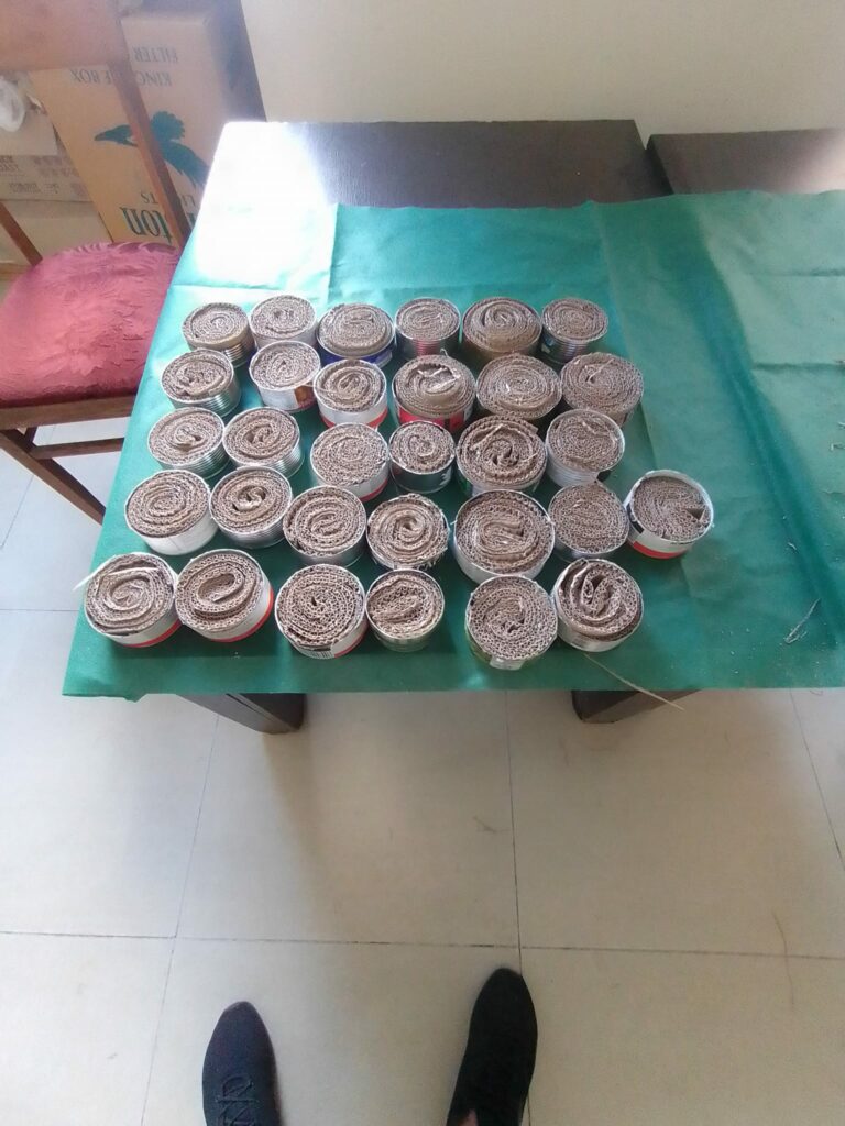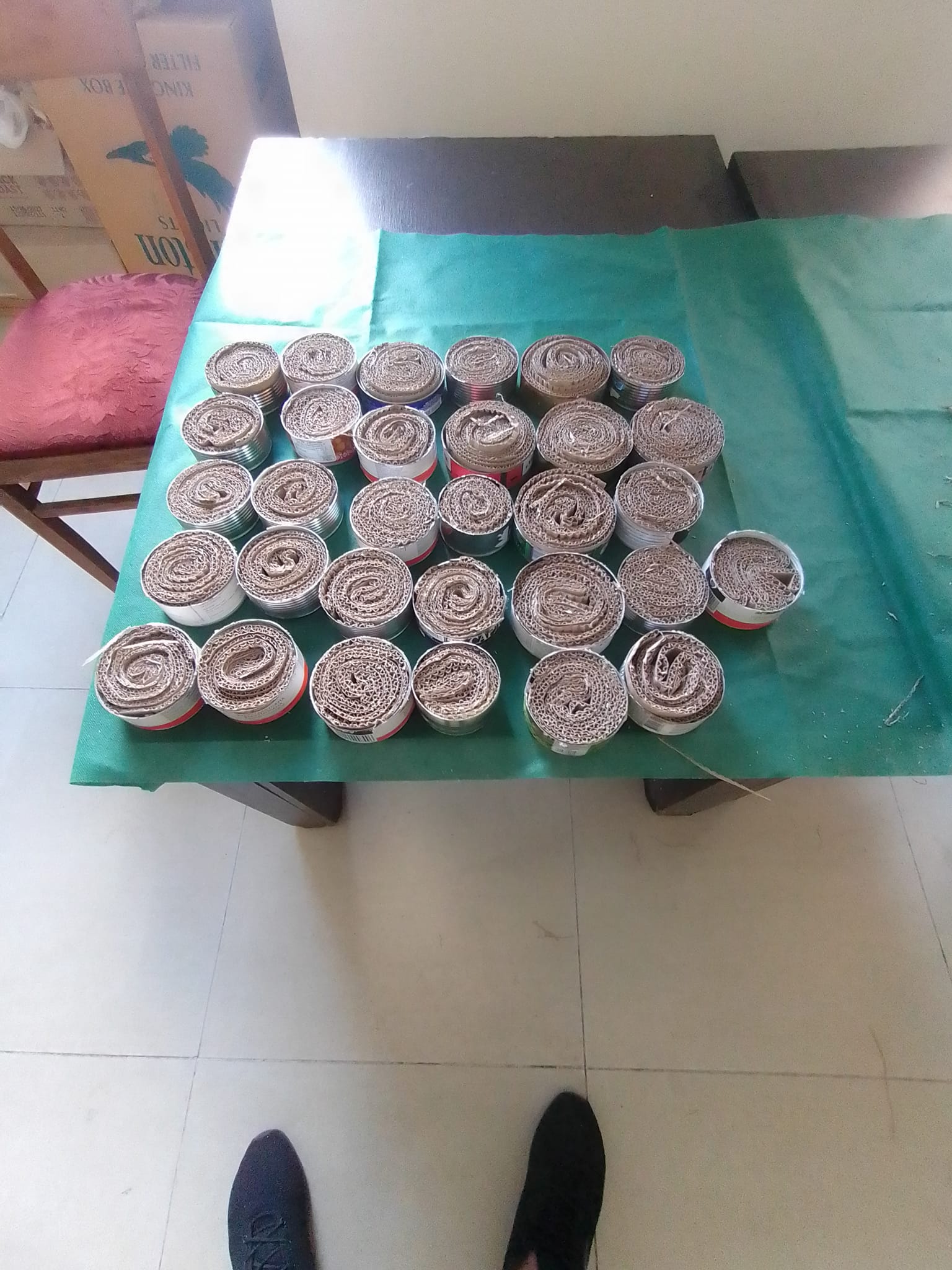 Свічки для окопів роблять у металевій тарі з-під консервів. Картон ріжуть на смужки, скручують і складають у банки з-під консервів. Парафін чи віск перетоплюють та заливають у бляшанки з картоном.