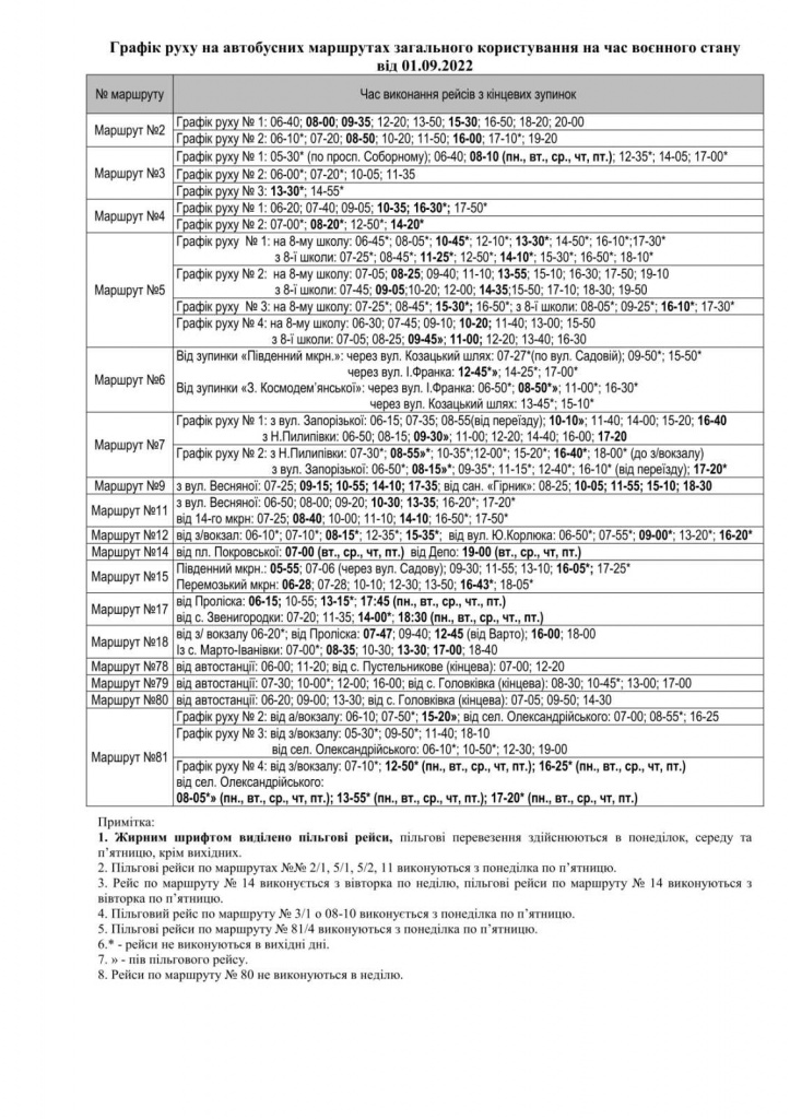 У графіку руху автобусів із 1 вересня вводяться зміни на окремих маршрутах.