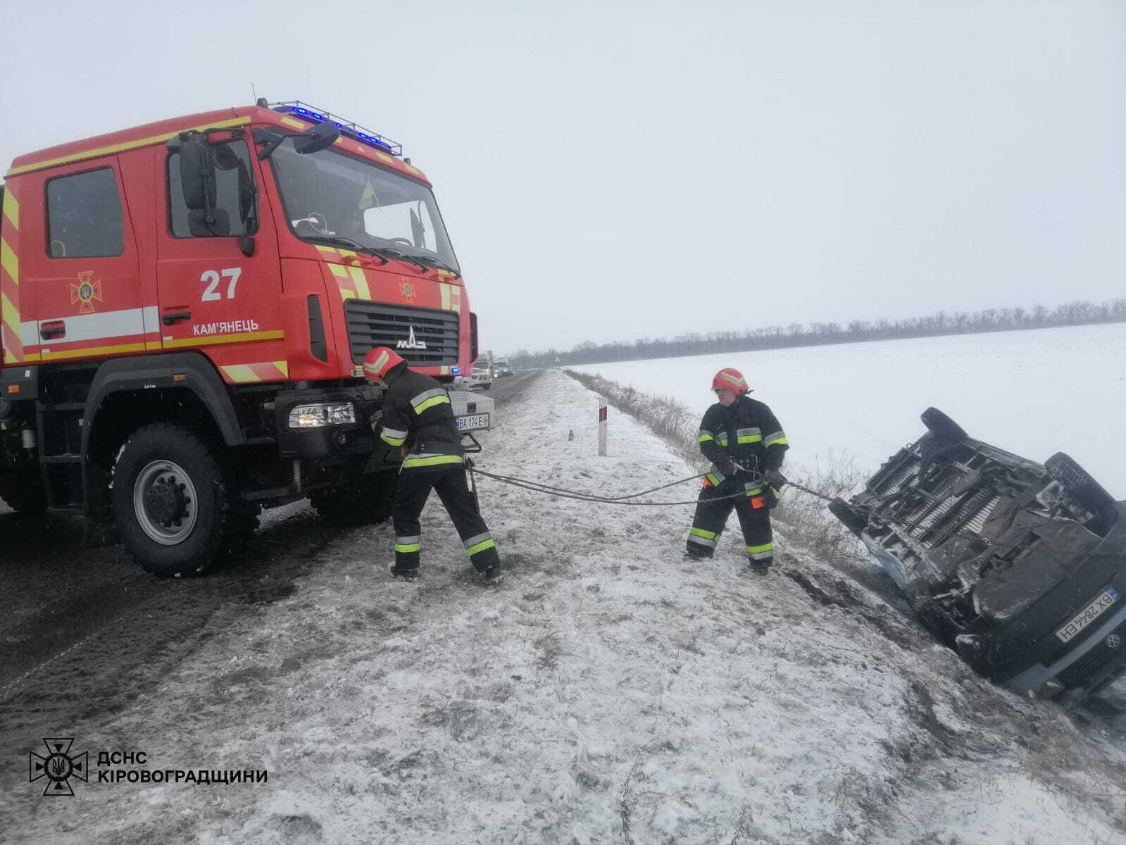 Двічі рятувальники вилучали автомобілі з кюветів на автодорозі Н-23, в межах території Кропивницького району: біля с. Куцівка Кам’янецької СТГ та між с. Братолюбівка та с. Гурівка Долинської МТГ.