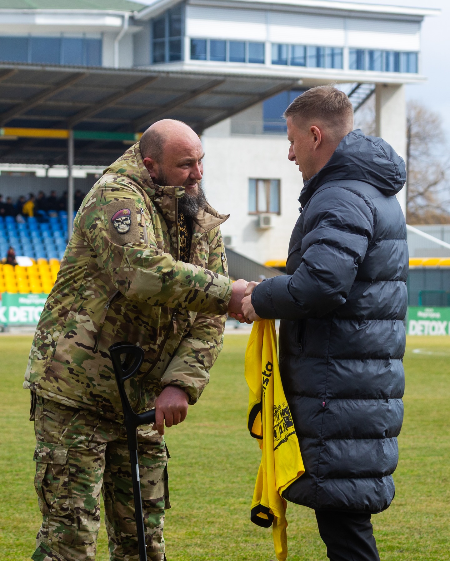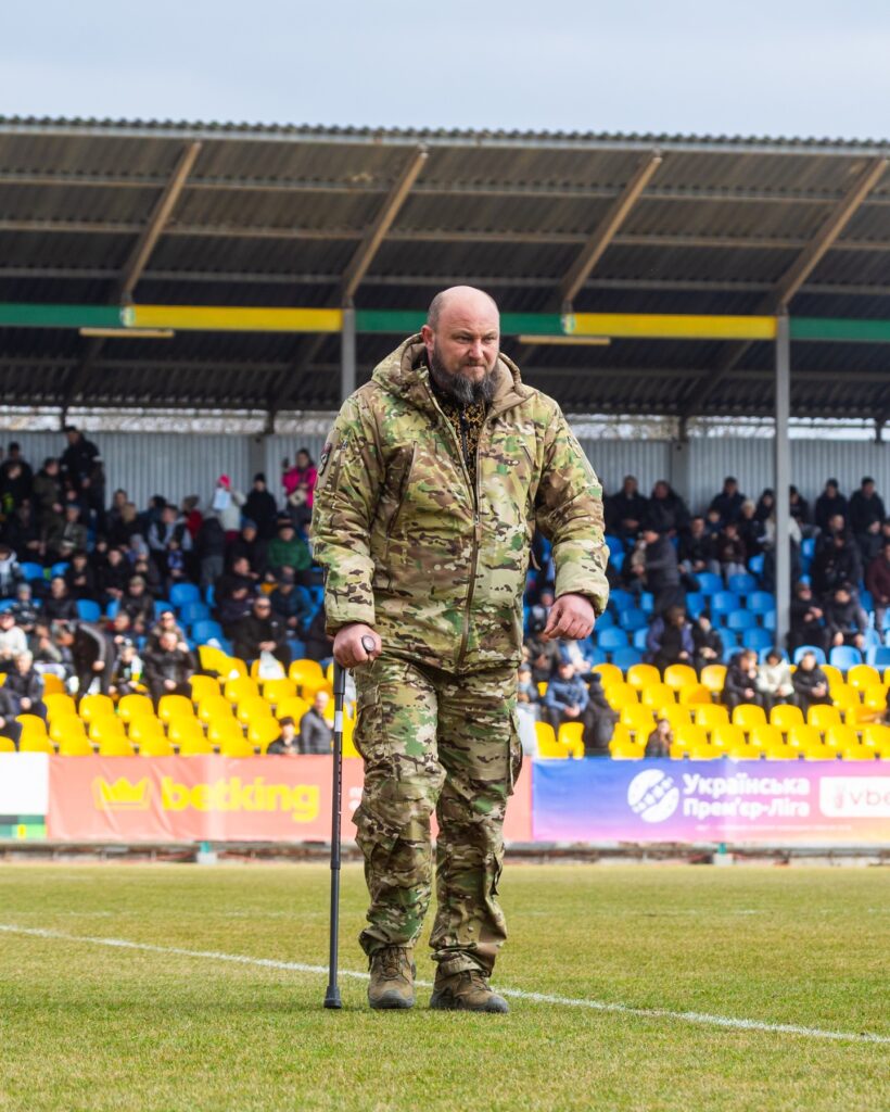 Перший символiчний удар по м’ячу в матчi 21-го туру УПЛ “Олександрiя” – “Динамо” Герой з Кiровоградщини Анатолiй Блага.