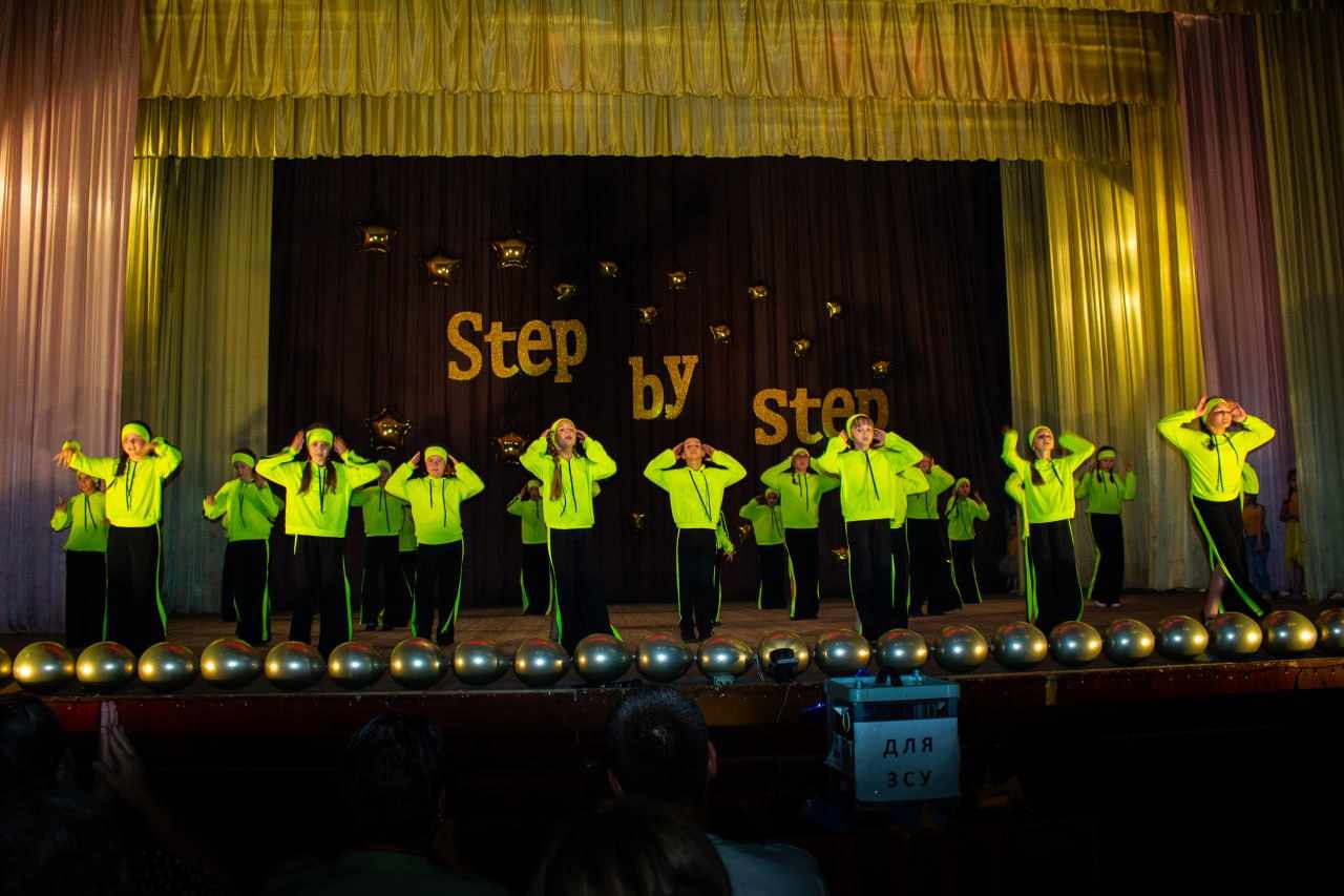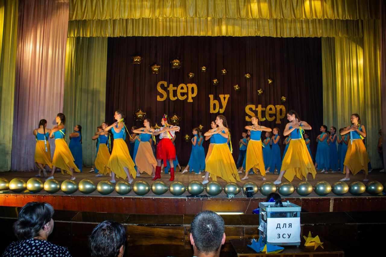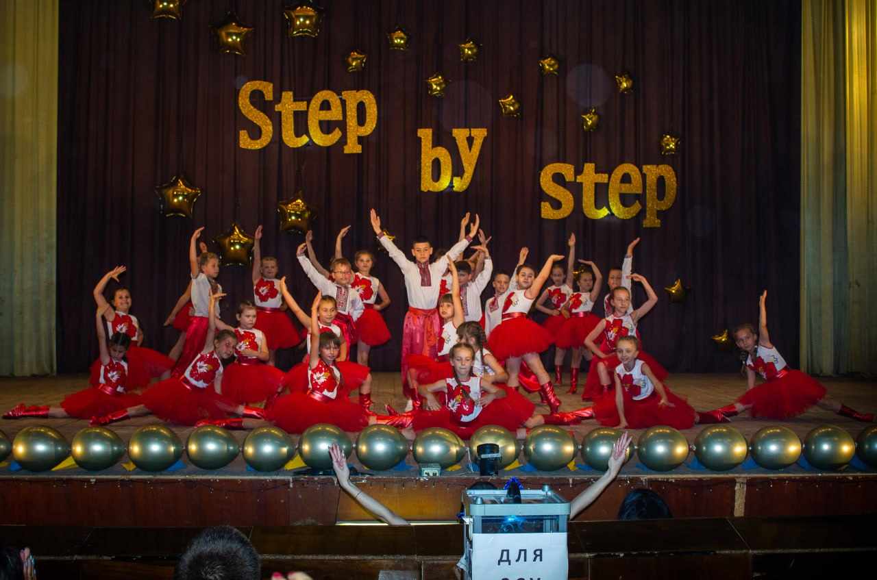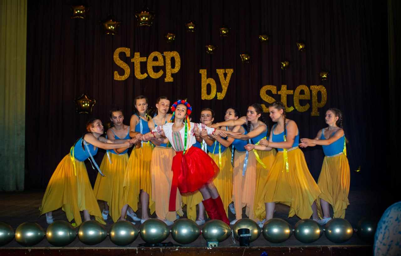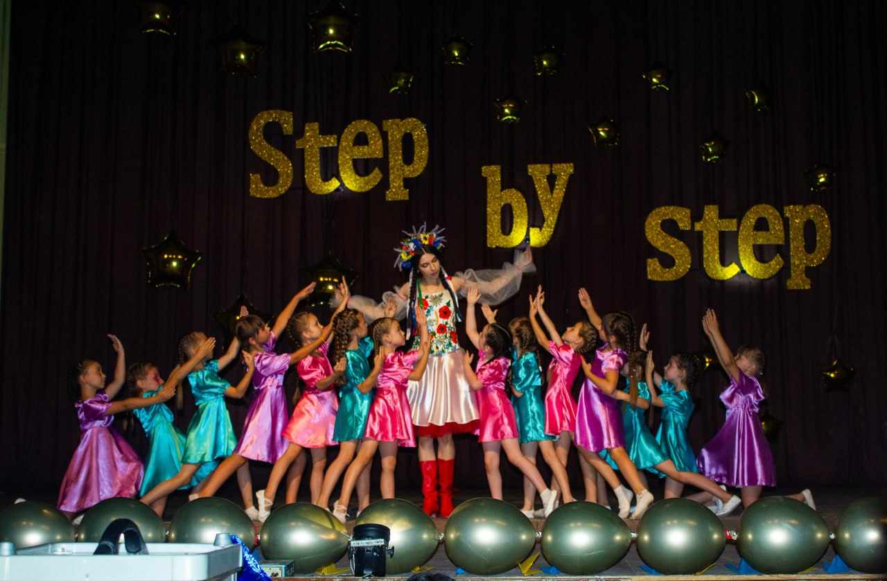 «Чесно кажучи, не планувала вiдкривати колектив i залишатись в Помiчнi. У мене в Києвi був мiй колектив 50 дiток, але так як почалась вiйна i я мусила їхати додому i все надiялась ось-ось повернусь назад. Так вийшло, що попросили мене поставити на День Перемоги танець всi надiялись, що вона буде геть незабаром i я три мiсяцi займалась з дiтками, щоб поставити наш перший танець «Ми за мир»!,- говорить сама хореографиня, – пройшли канiкули i я прийняла рiшення залишатись в Помiчнi i вiдкривати свiй колектив. За три мiсяцi занять стали дiтки менi дуже близькими i з вересня мiсяця ми почали працювати. Зараз в колективi 120 дiток. Назва колективу STEP BY STEP – це моє кредо по життю, крокувати i не зупинятись на досягнутому завжди вперед i вiрити в себе».