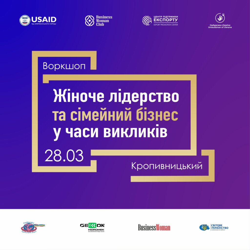 28 березня у Кропивницькому вiдбудеться воркшоп “Жiноче лiдерство та сiмейний бiзнес у часи викликiв”.