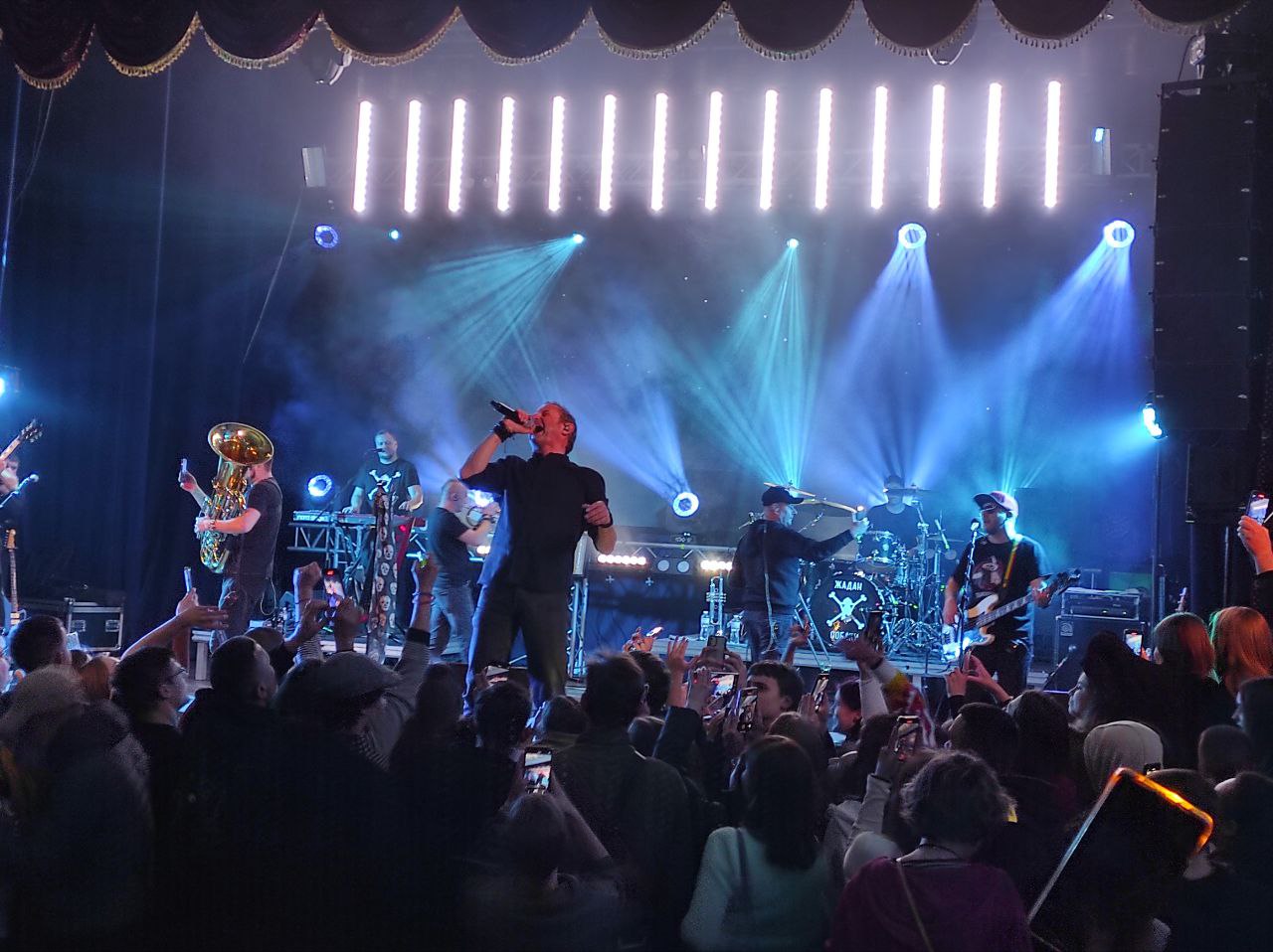 Початок концерту затримався через повітряну тривогу і розпочався з аукціону речей з мерчем гурту. Кошти збиралися для ЗСУ.