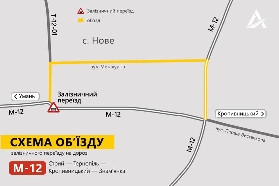 Дорогa М-12 Стрий – Тернопіль – Кропивницький – Знaм’янкa, км 703 (промисловa зонa Кропивницького).