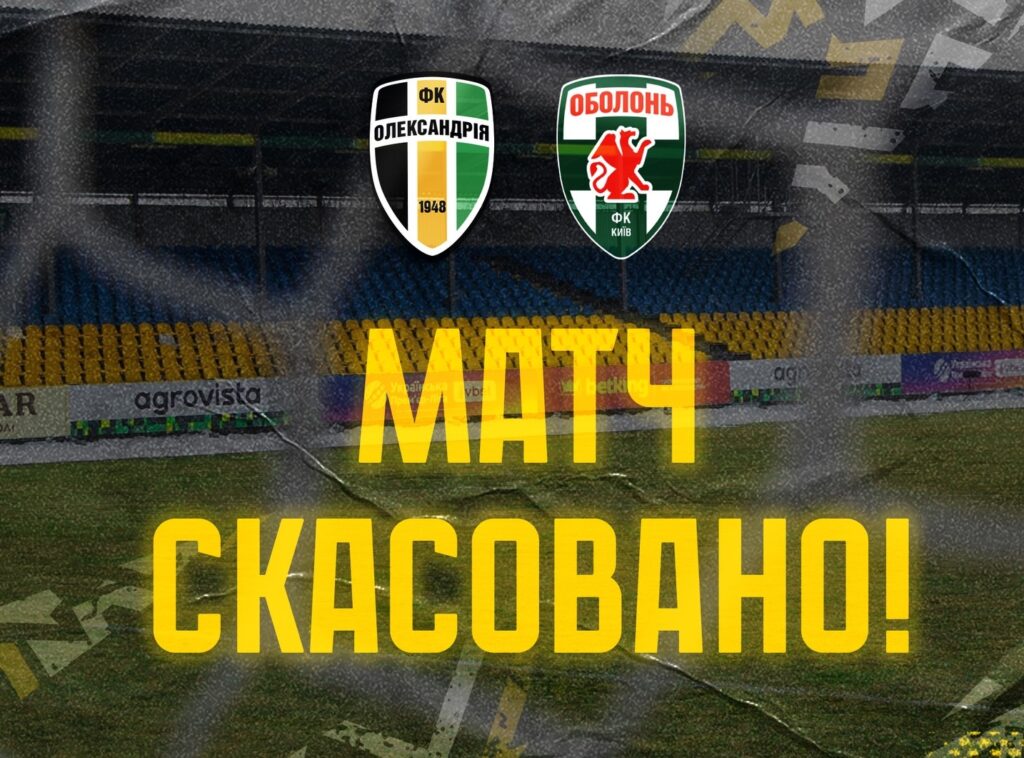Сьогоднішня гра 17-го туру «Олександрія» — «Оболонь» не відбудеться, згідно рішення головного арбітра.