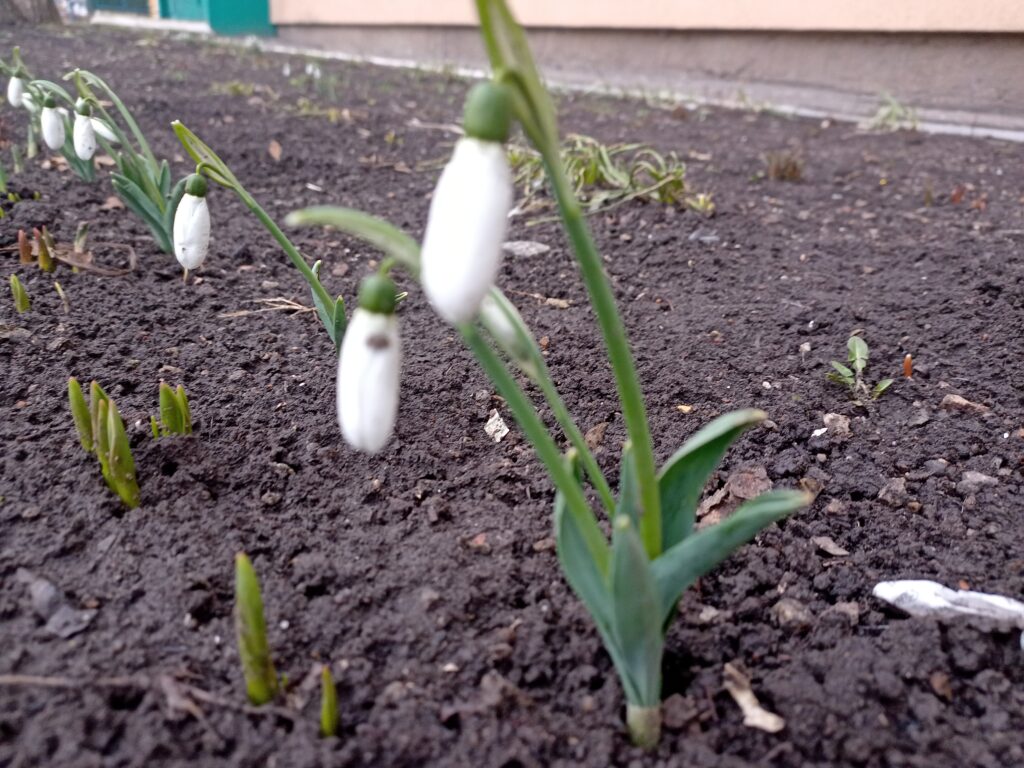 Сніговий шар, що подарували останні дні зими, майже зник, і подекуди на клумбах видно підсніжники. Дерева також чекають нагоди обрости бруньками і нарешті розпустити листя.