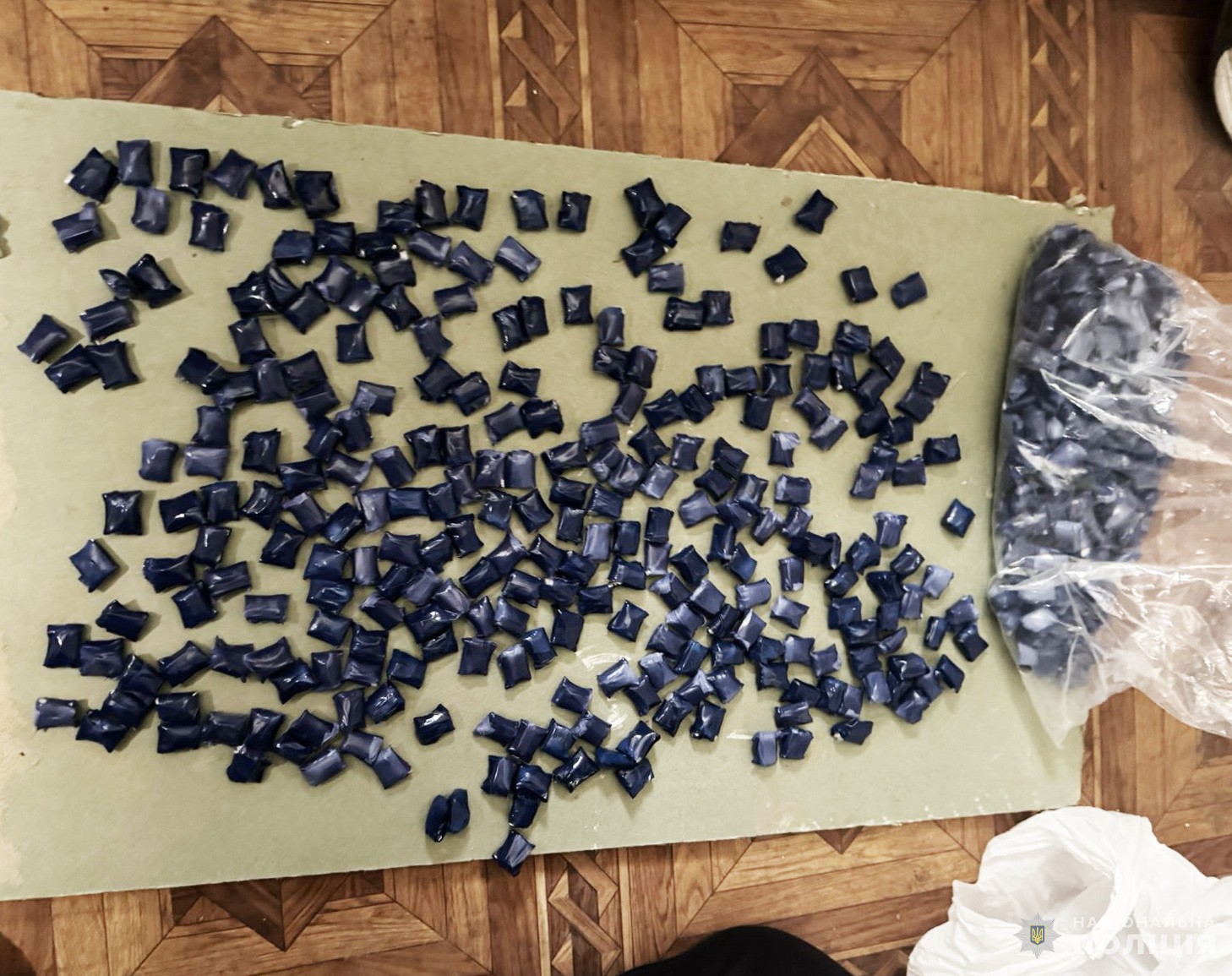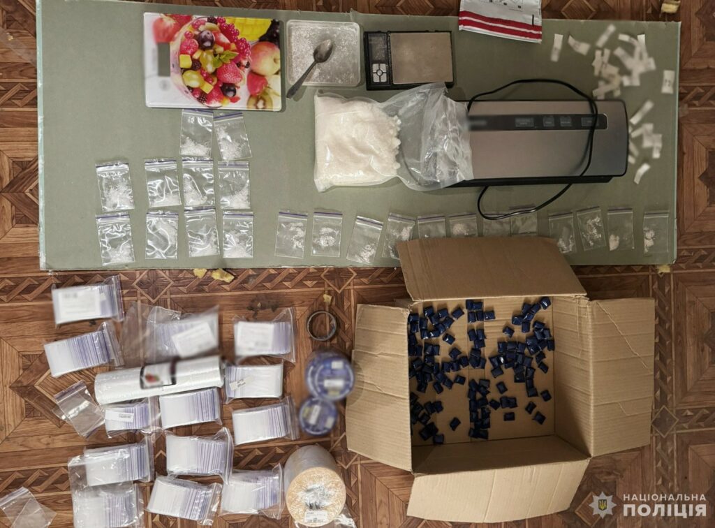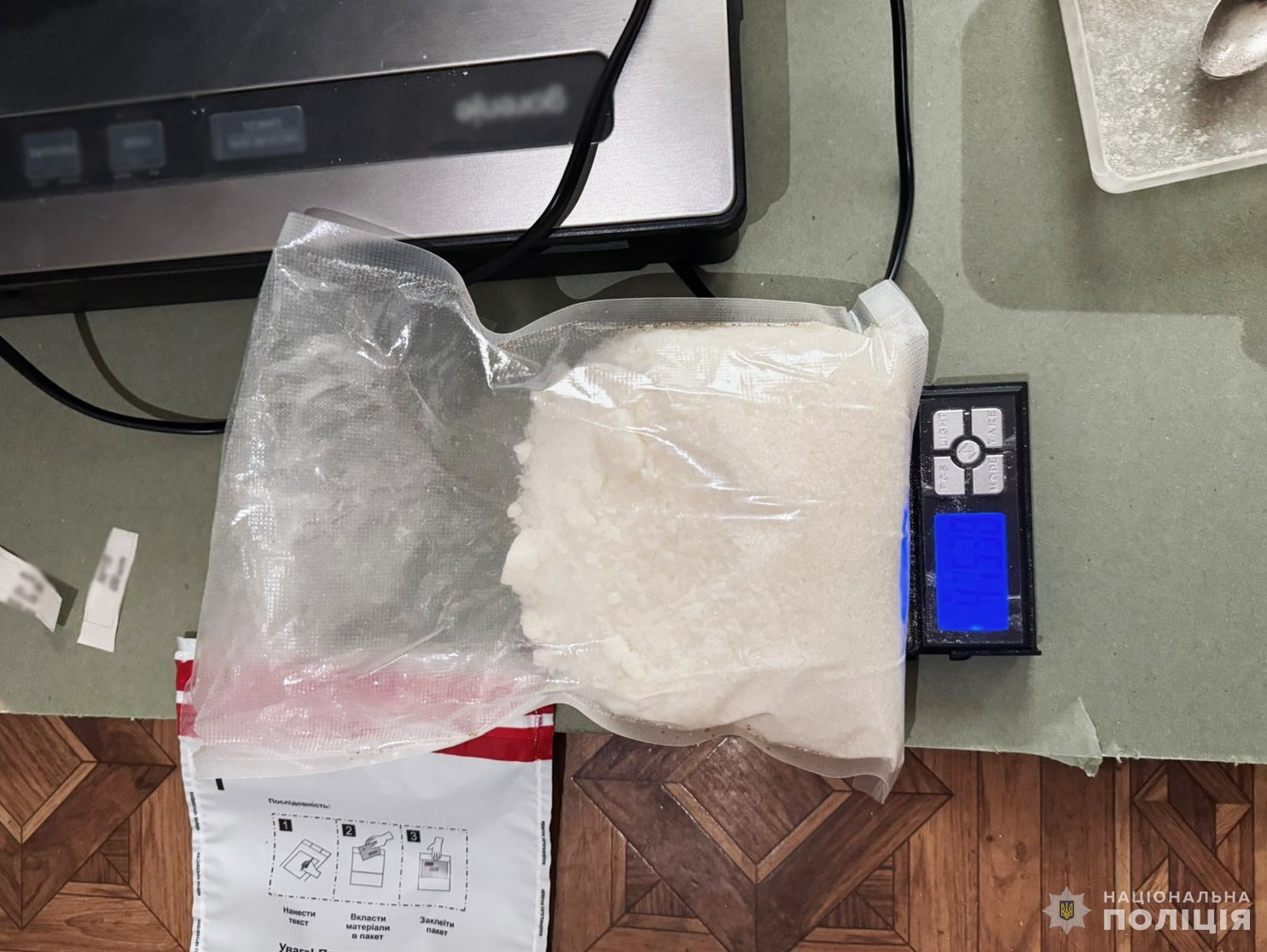 Під час обшуків поліцейські вилучили майже пів кілограма психотропної речовини, 625 готових до збуту «закладок» та приладдя для фасування наркотиків.