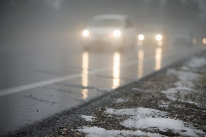 Невеликий мокрий сніг, слабке налипання мокрого снігу.