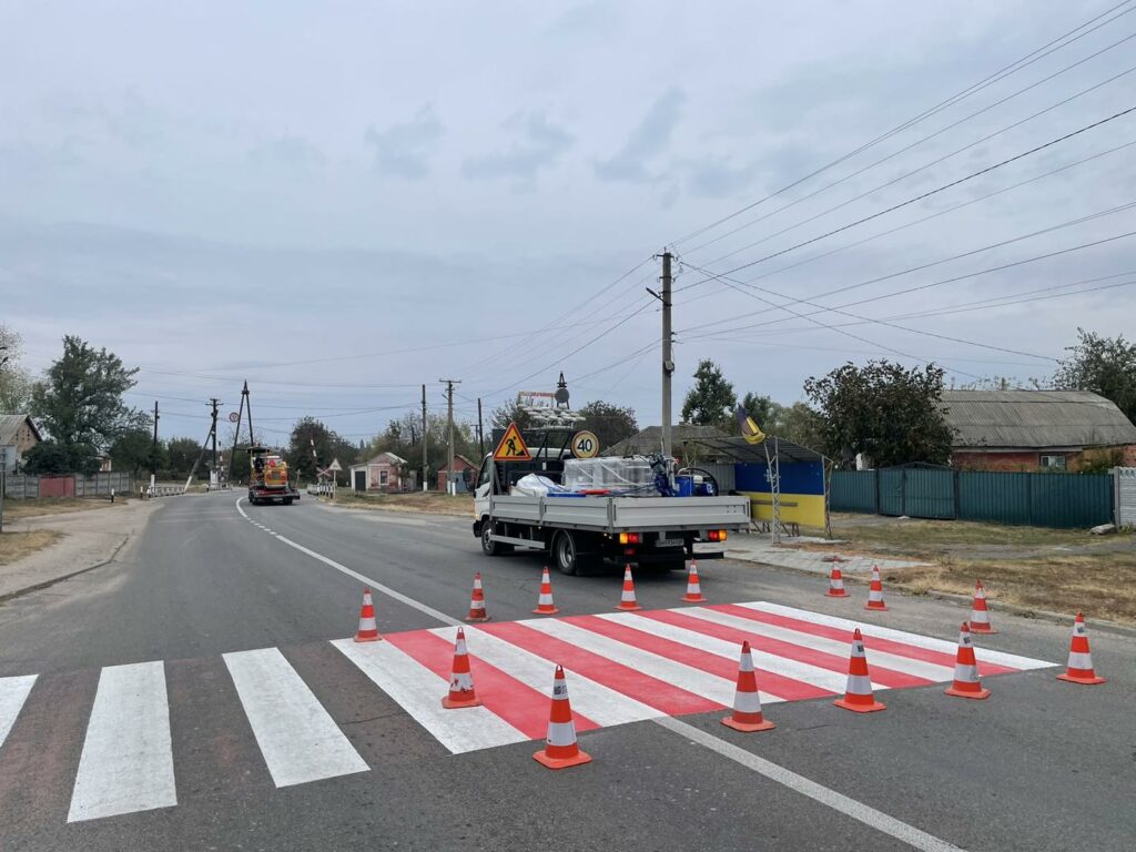 “Цi оновлення спрямованi на забезпечення безпеки всiх учасникiв дорожнього руху. Цього разу для пiдвищення видимостi та безпеки водiїв i пiшоходiв використовується бiла i червона фарба.