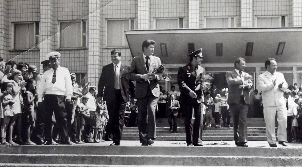 А у ті далекі вісімдесяті ми вітали в Кіровограді славетних космонавтів Валерія Рюміна і нашого земляка з Олександрії, сина хлібороба, Леоніда Попова – двічі Героя Радянського Союзу, який тричі побував у космосі.