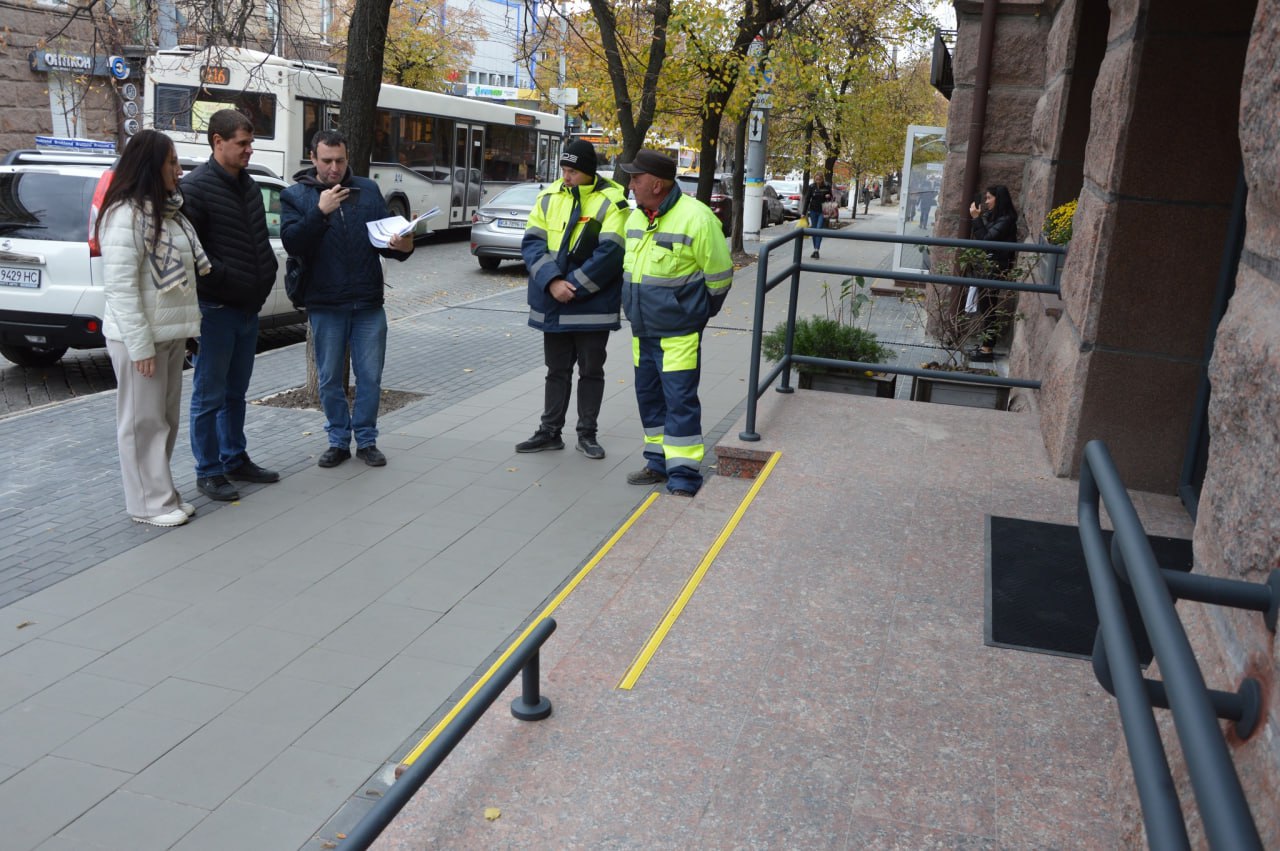 У перший день роботи група провела моніторинг ділянок безбар’єрного маршруту на вулицях Шевченка та Великій Перспективній. Фахівці оглянули об’єкти, де триває капітальний та поточний ремонт тротуарів, оцінили стан доступності та відповідність робіт затвердженим проєктним рішенням.