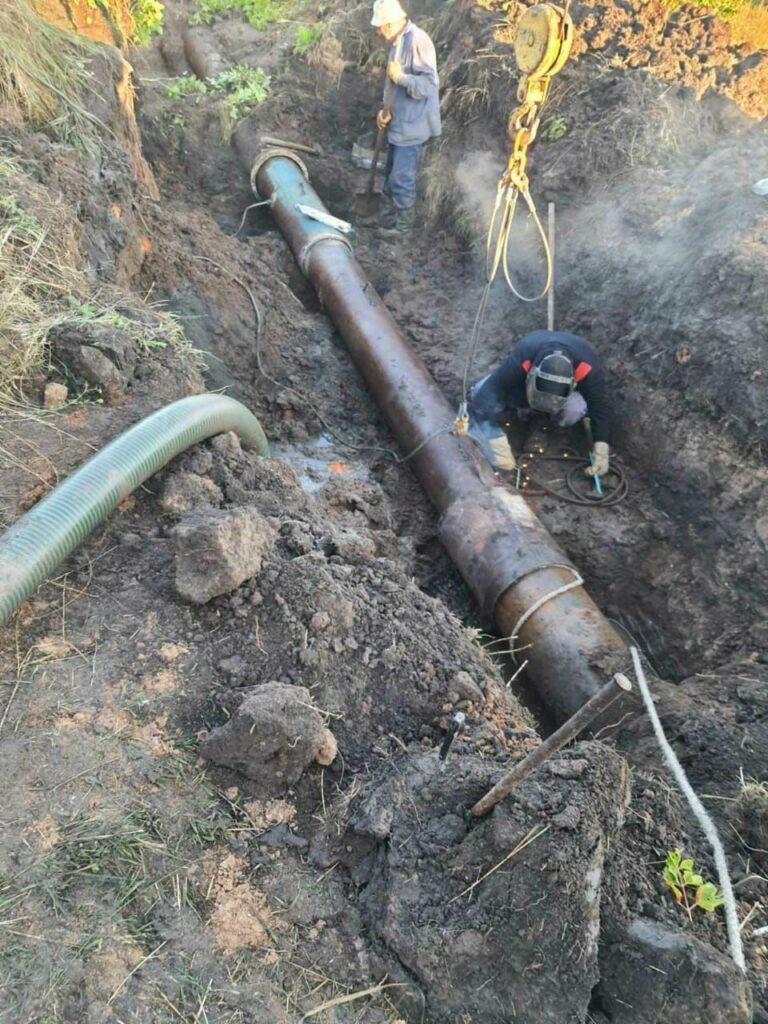 “Трiснула стара чавунна труба. Всю нiч працiвники пiдприємства працювали, виконали дуже складну роботу — замiнили п’ять метрiв водопроводу. Зараз завершують роботи зi з’єднання металу з чавуном, а потiм почнеться заповнення резервуару водою, – повiдомив Олександр Чельник”.