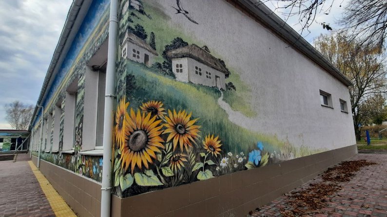 Розпис фасаду ліцею — це продовження стінопису “Тарас Шевченко”, який з’явився торік. Начальниця відділу культури Дмитрівської сільради Лідія Міркотан розповіла, що це будівля для молодшого корпусу, і спочатку її планували прикрасити дитячими малюнками, але потім залишили єдиний стиль у розписі школи.