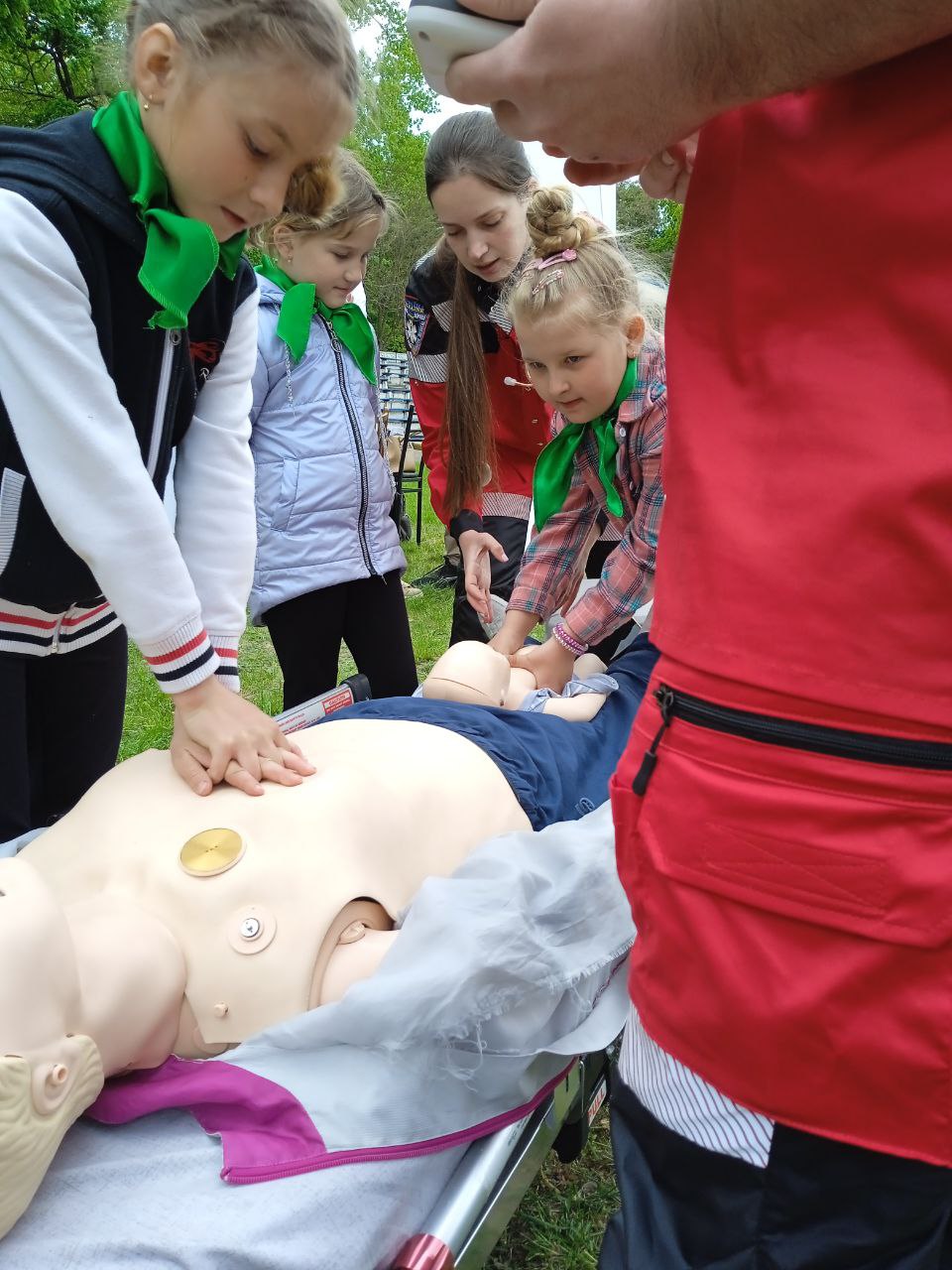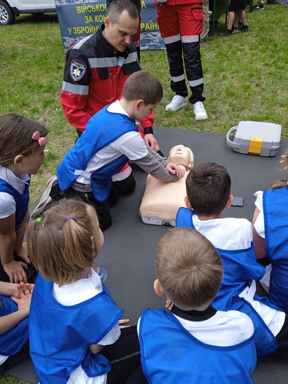 Школярі вчилися надавати першу допомогу, робити масаж серця, використовувати дефібрилятор та навіть виконували реанімаційні дії на манекенах.