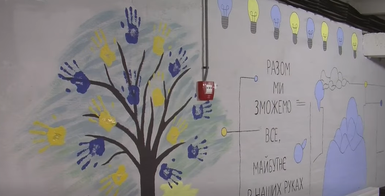 Тепер стіни укриття прикрашають мотиваційні вислови, символи України, а також дитячі малюнки, на яких мрії дітей про мир, перемогу та щасливе майбутнє.