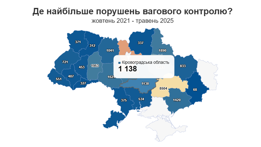 В Кiровоградськiй областi зафiксували 1138 таких порушень.