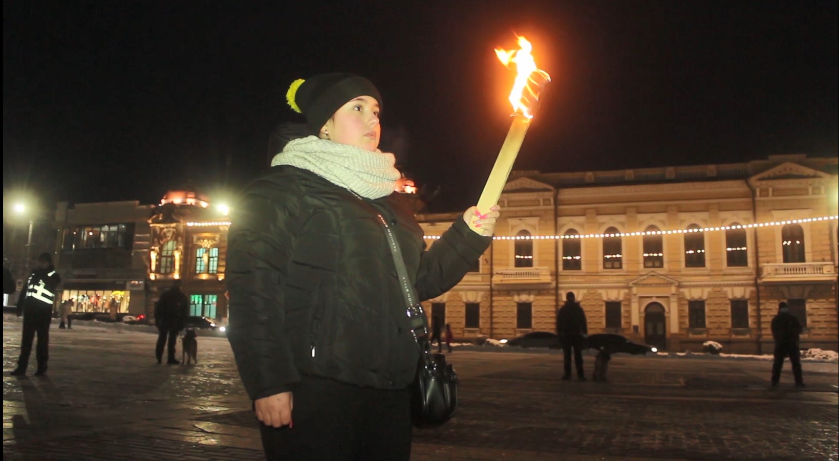 “Молоді хлопці: гімназисти, студенти, молоді воїни – не кожен зумів би піти і в мороз лежати там на снігу і воювати знаючи, що він може в будь-яку хвилину загинути”, – сказала учасниця акції Валентина.