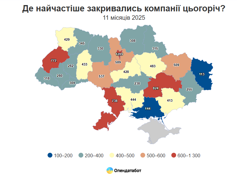 Понад 11 тисяч компанiй припинили свою дiяльнiсть за 11 мiсяцiв 2025 року за даними Єдиного державного реєстру.