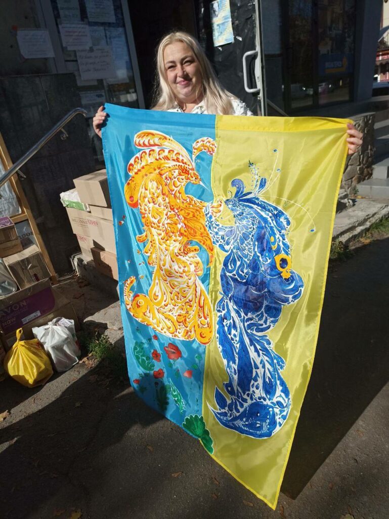 В олександрiйському координацiйному центрi волонтерiв на Кiровоградщинi продають розмальованi дiтьми синьо-жовтi прапори.