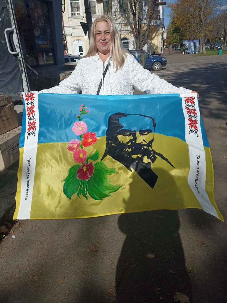 Нинi у центрi мають п’ять прапорiв. Їх розмальовували вихованцi мiсцевої дитячої художньої школи. На них зображенi кордони України, Тарас Шевченко, соняхи та птахи.