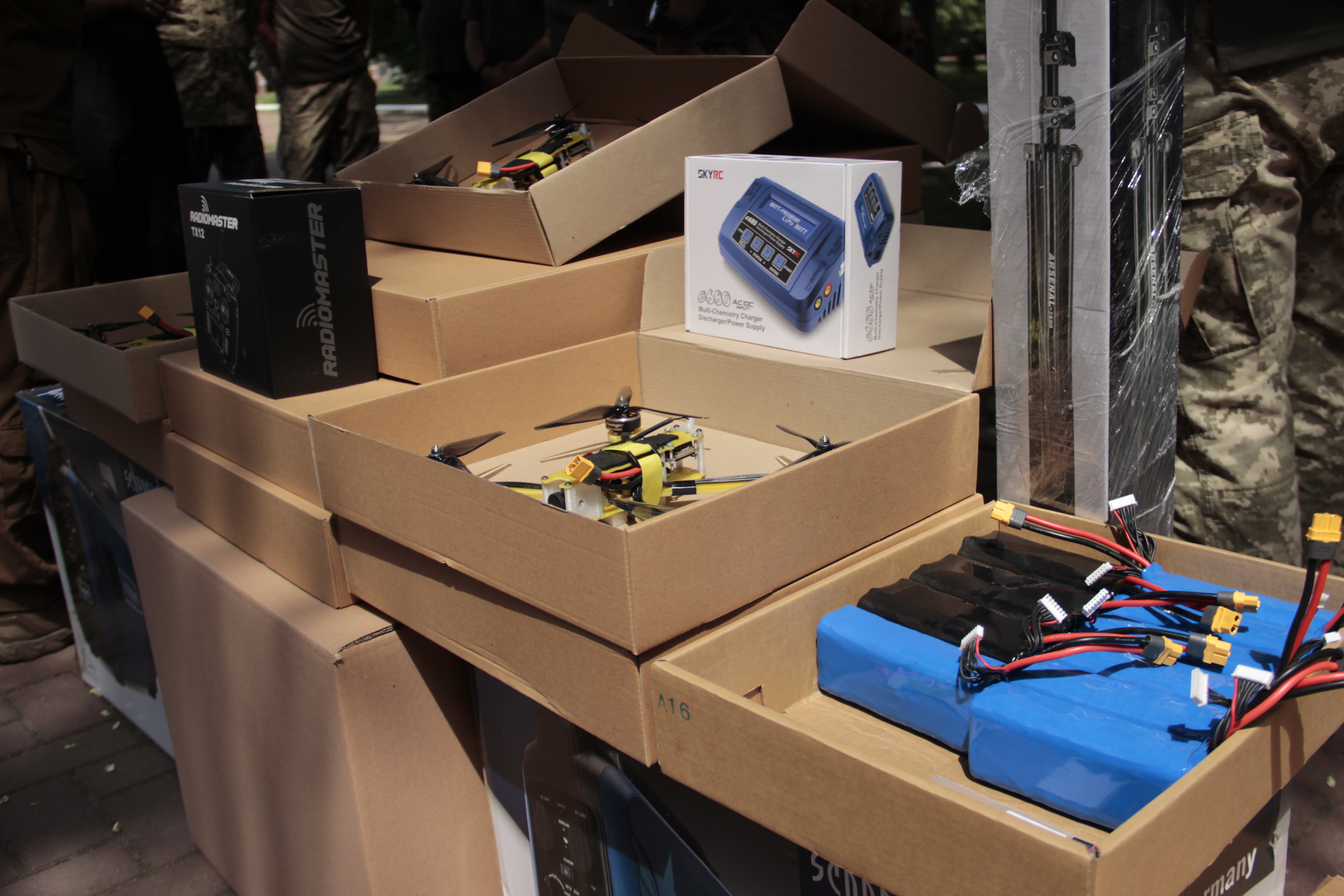 Під час зустрічі військовим передали два потужних генератори, 10 дронів-камікадзе, а також пульти керування для них.