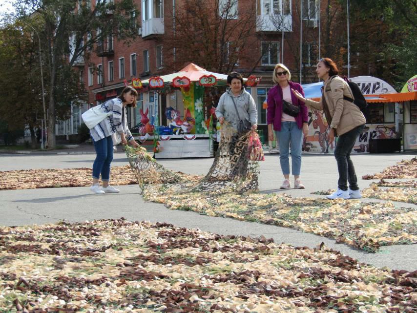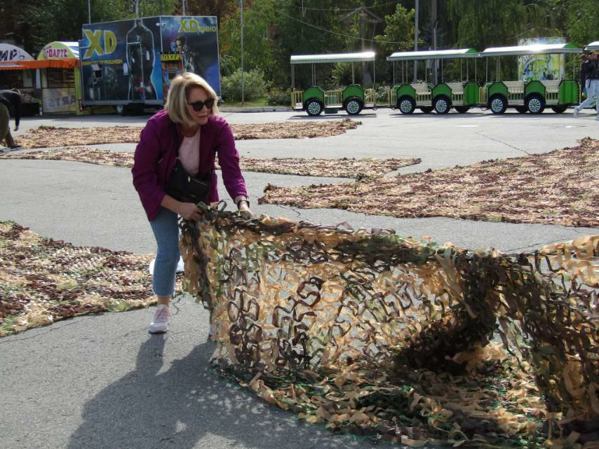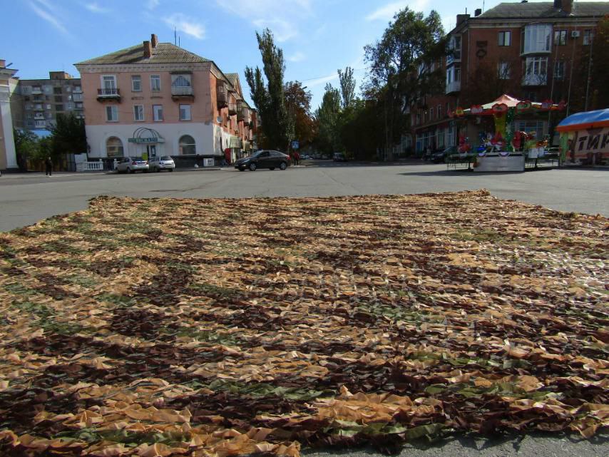 Волонтери організували цю короткочасну акцію для привернення уваги людей до потреб наших військових в маскувальних сітках.