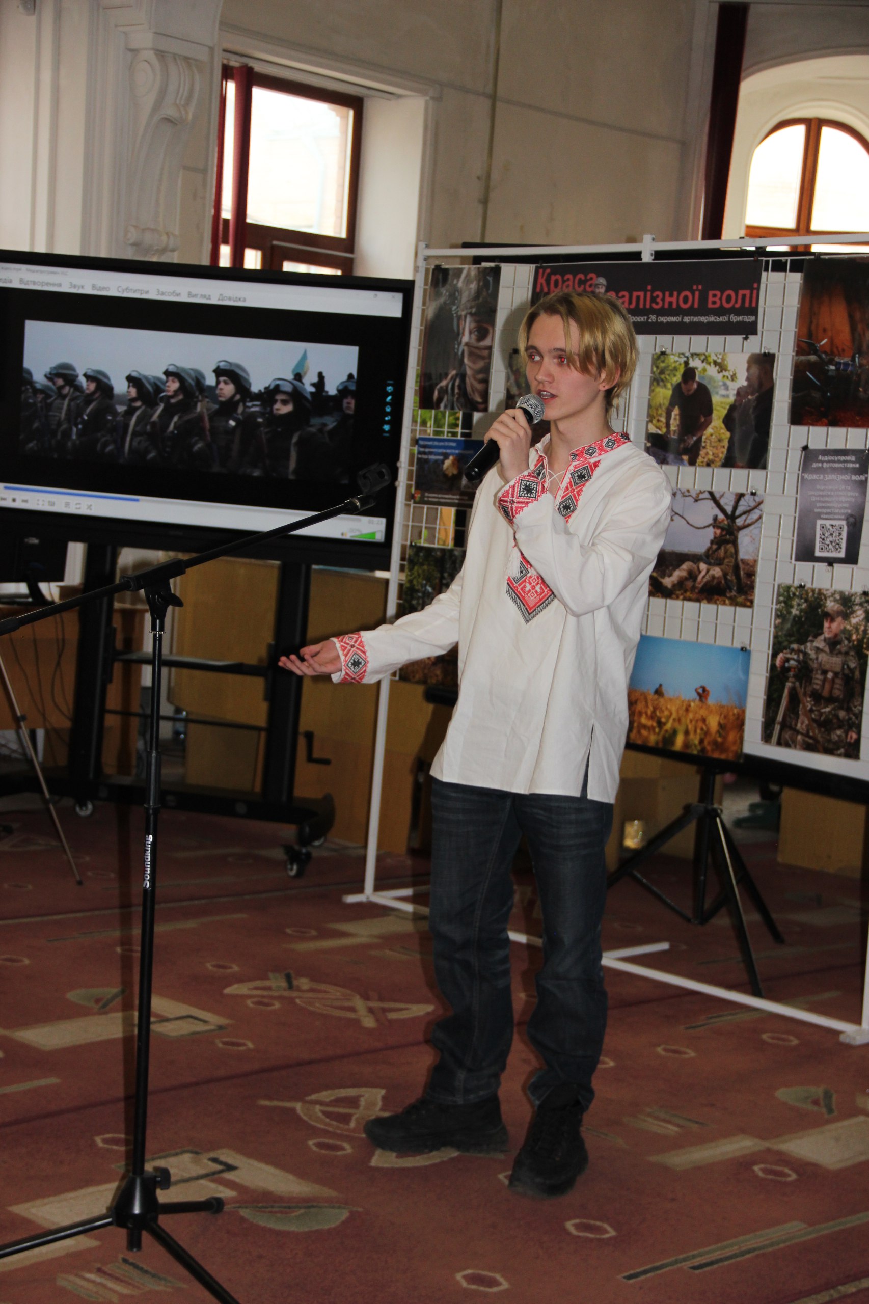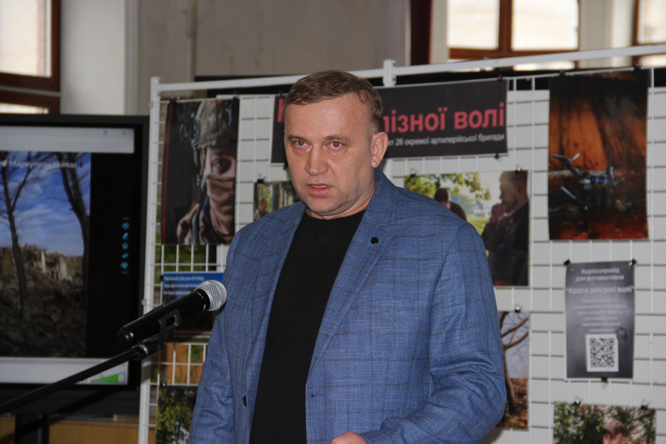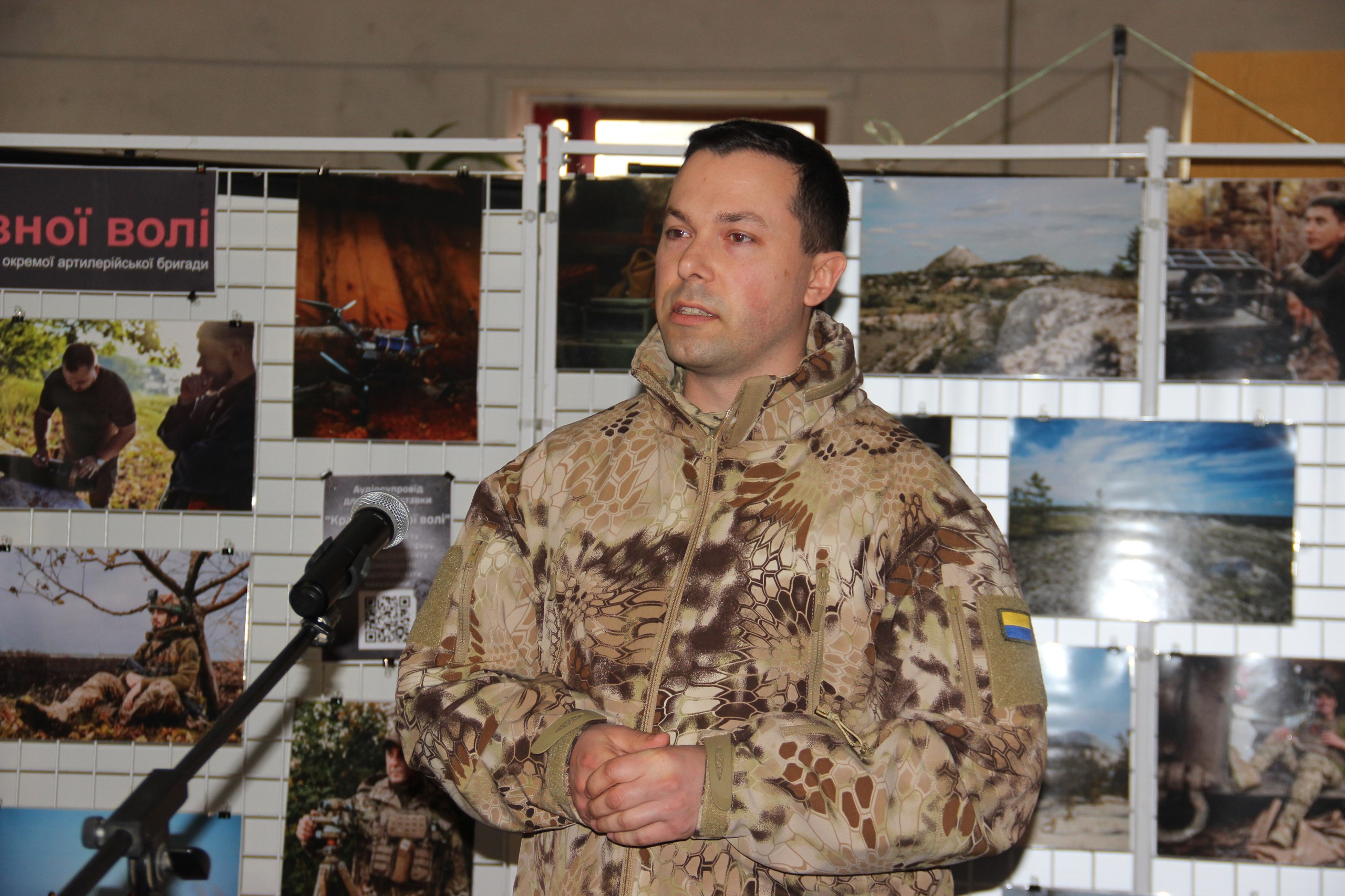 Окремо всіх присутніх привітав один з організаторів передвижної виставки, офіцер 26-ї окремої артилерійської бригади імені генерал-хорунжого Романа Дашкевича Максим Муравський.