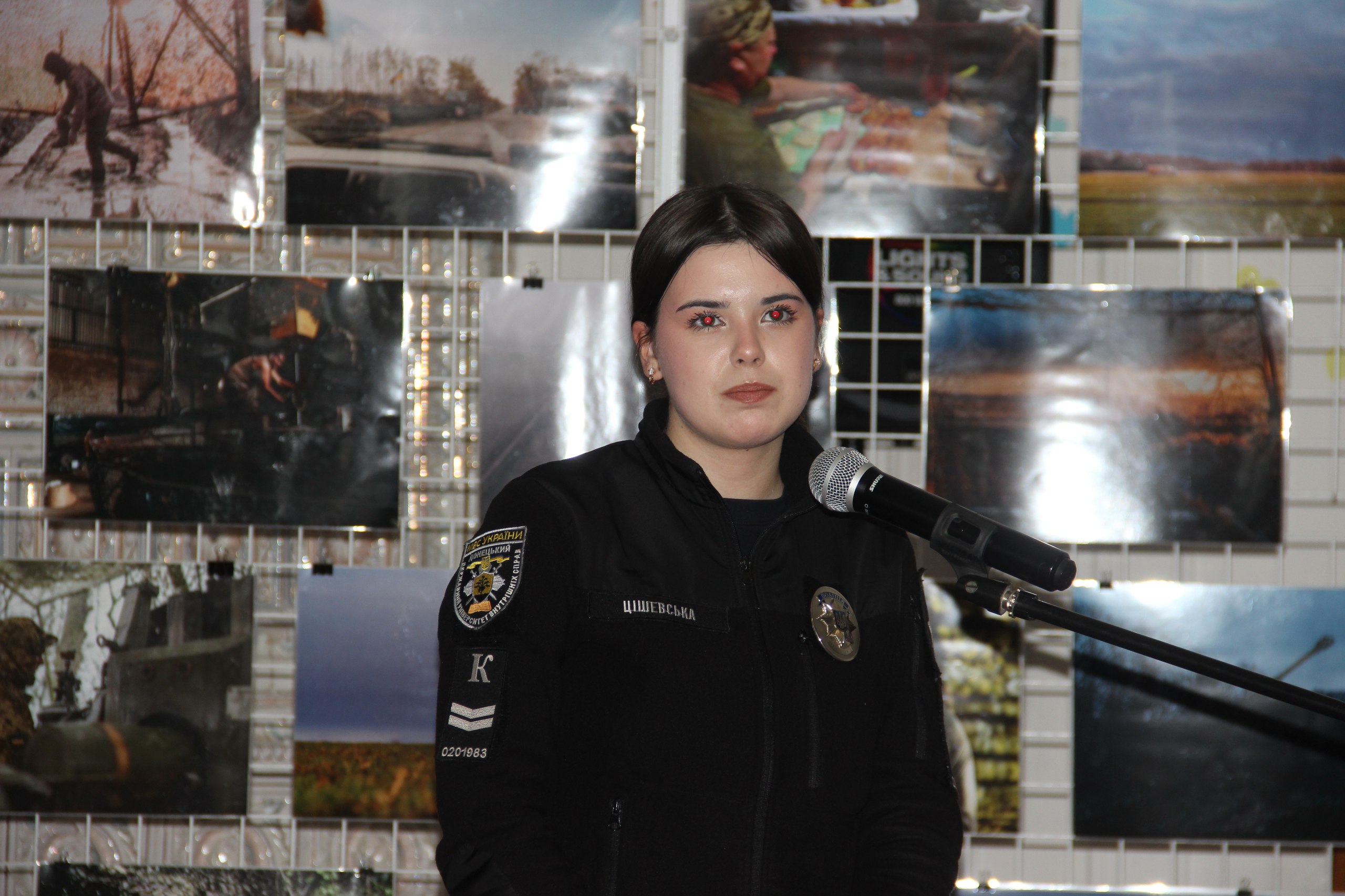 «Я би хотіла звернутися до молоді: усвідомте, що ви є українці, що наші батьки, сестри, брати які на передовій захищають нас. І завдяки ним, ми маємо змогу тут жити. Переглядаючи ці світлини я усвідомила що фотокореспонденти фіксують це все що відбувається там на війні саме для майбутнього, для того, щоб коли ці військові повернуться, вони почувалися комфортно серед нас, а ми з розумінням ставилися до їхньої поведінки», – каже голова ГО «Єдина родина Кропивниччини» Олена Степанок.