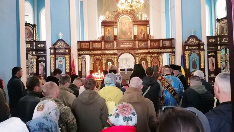 За його інформацією, перший молебень у гарнізонній церкві провів архієпископ Кропивницький та Голованівський Православної церкви України Марк. Молилися за мир та перемогу України.