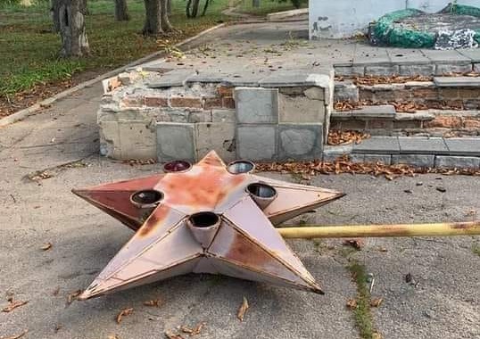 “У нас вересневий нелагідний зорепад. Демонтовано зірку з пам’ятного знаку біля школи”, – прокоментувала активістка.