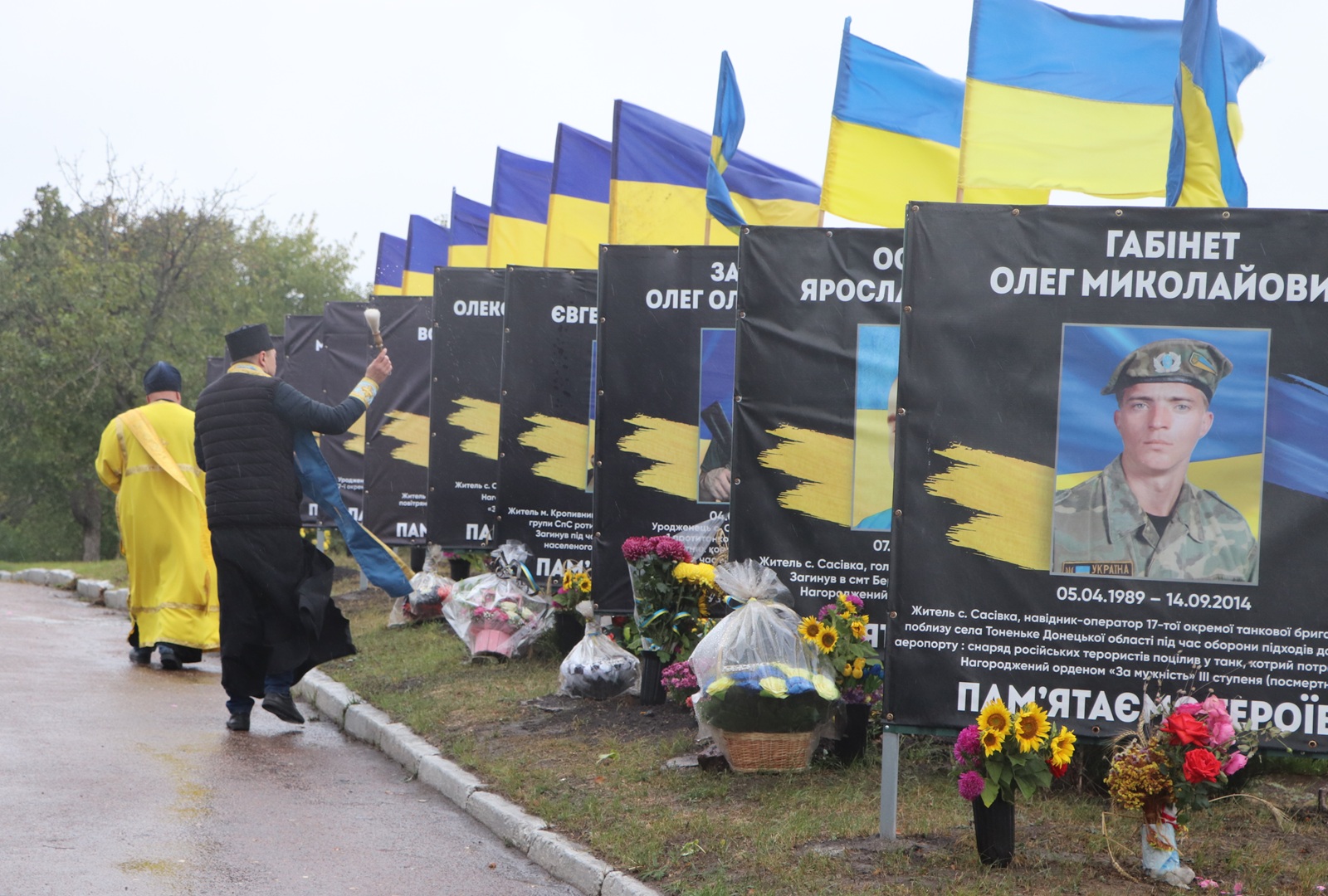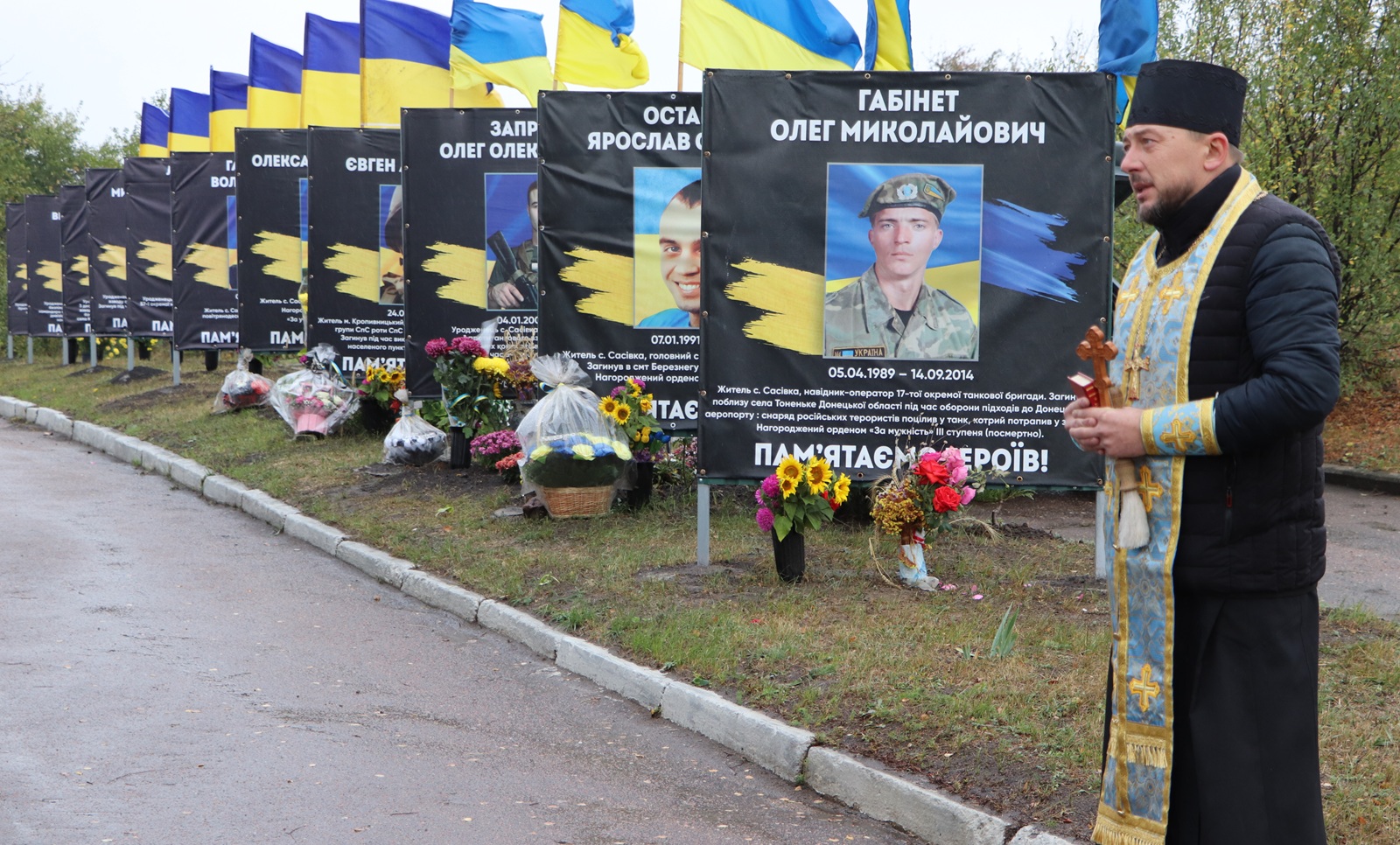 Хвилиною мовчання присутні віддали шану світлій пам’яті воїнів, загиблих у боротьбі за свободу та єдність України. Священик Свято-Покровського храму Компаніївки отець Віталій відслужив молебень за полеглими воїнами України та освятив алею із світлинами загиблих героїв.