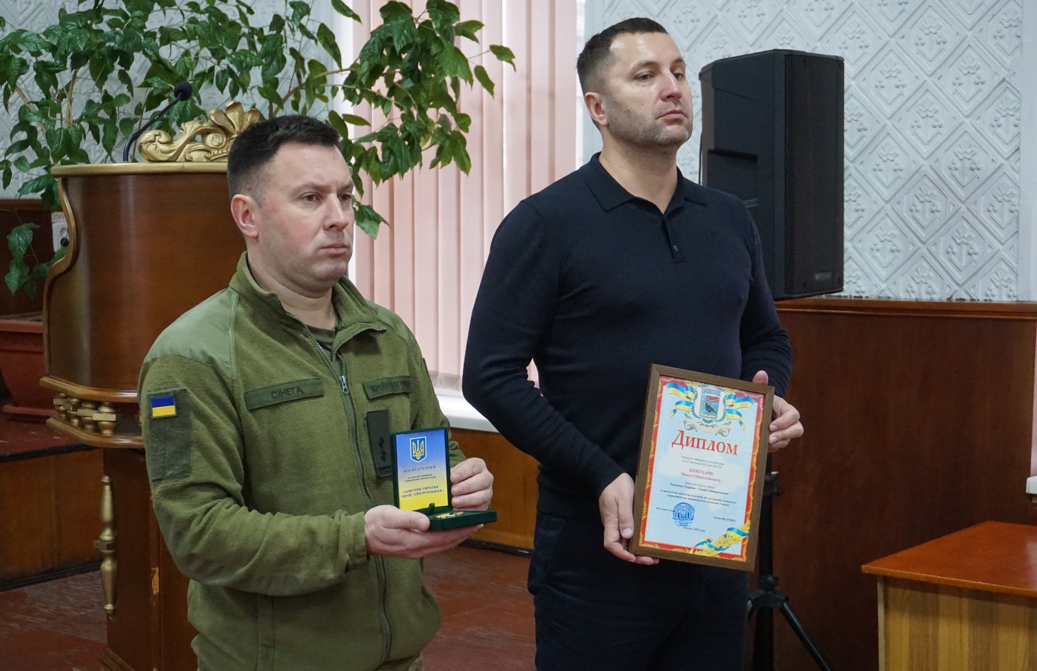 Вiдзнакою та дипломом «Захисник України – Герой Гайворонщини» (посмертно) було вшановано Кожухаря Миколу Миколайовича.