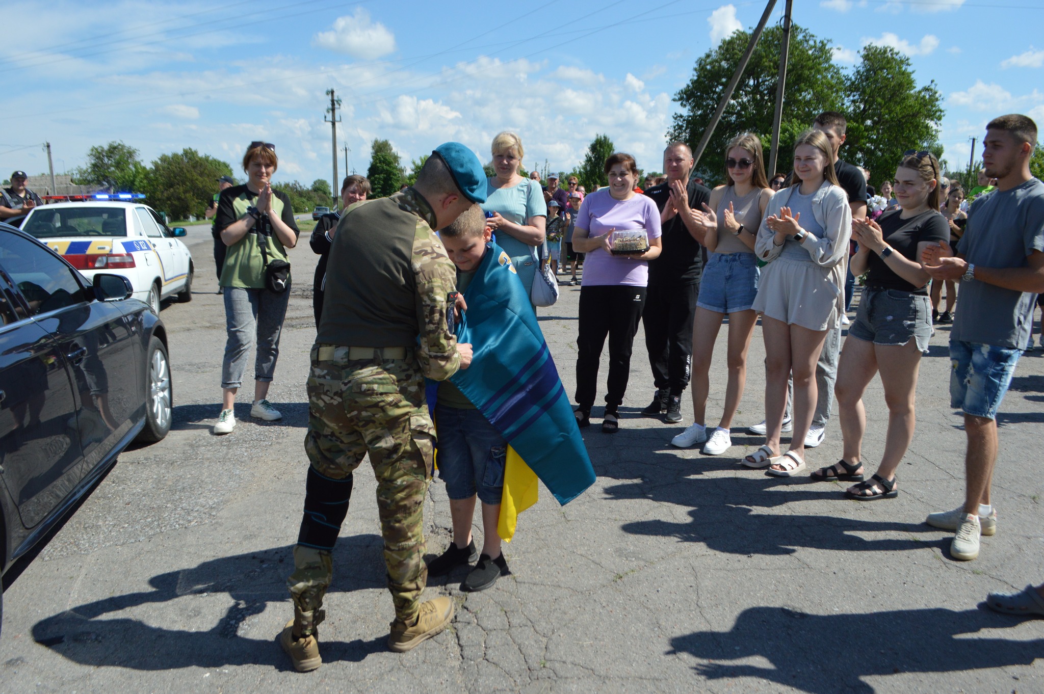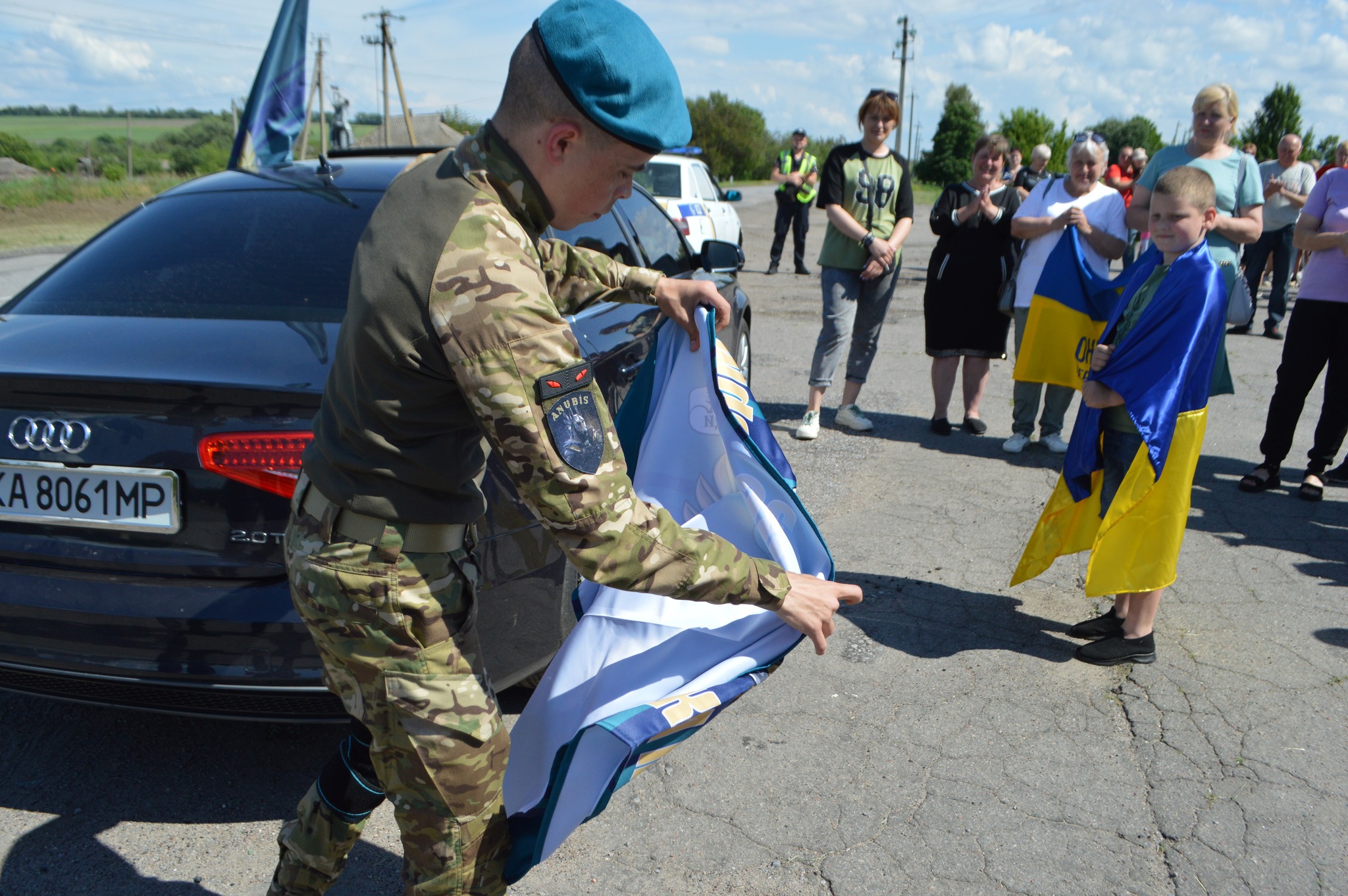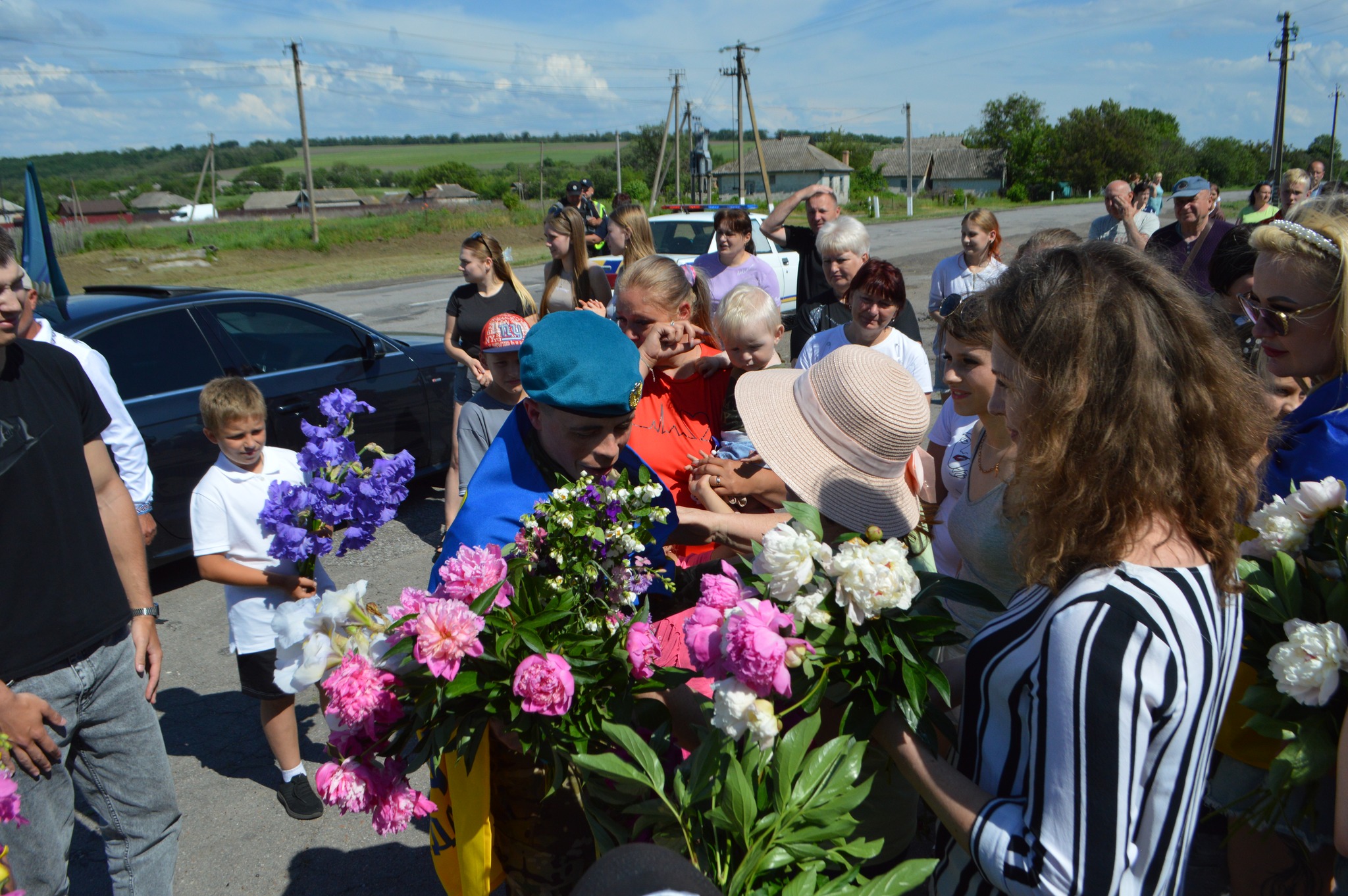 Від кордону з Онуфріївською громадою Героя супроводжував поліцейський наряд. Першим селом, яке привітало нашого захисника, стала Успенка. Його мешканці вийшли з квітами, з державними прапорами, одягнені у вишиванки, з гордістю і сльозами на очах.