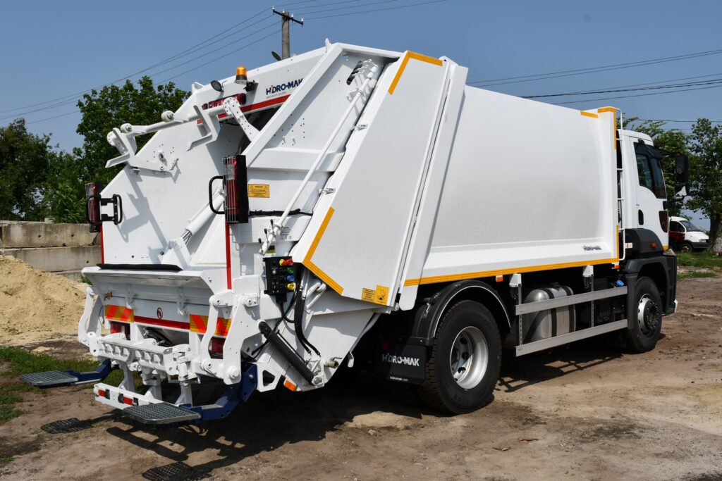 Цей сучасний транспортний засiб призначений для механiзованого завантаження, ущiльнення, транспортування i вивантаження твердих побутових вiдходiв та має потужнiсть до 22 кубiчних метрiв пресованого смiття.