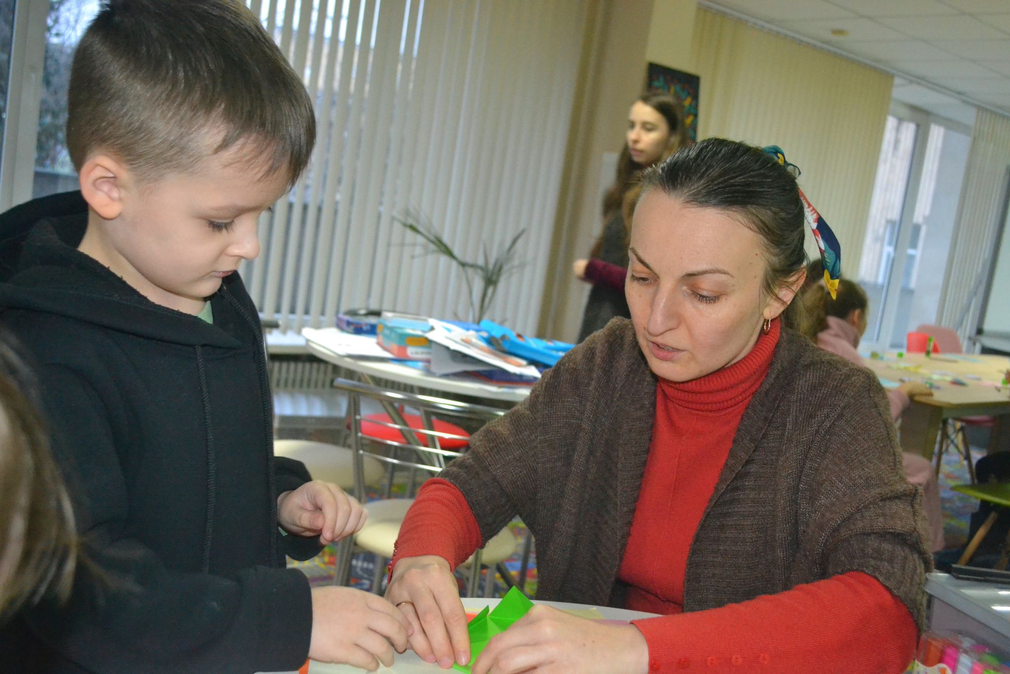 Ось і цього разу вони взяли активну участь в роботі по виготовленню поробок із використанням паперу, ножиць, клею та різнокольорових олівців.