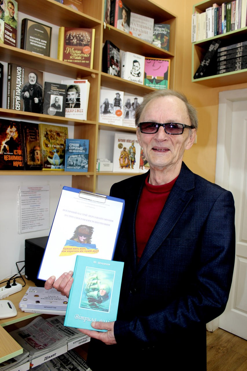 Цього разу до неї був запрошений автор книжки «Вітрила волі», волонтер, дизайнер, самодіяльний художник Юрій Шнурков.