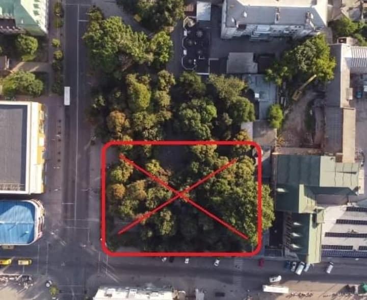 “Насправдi спиляють 10 дерев в лiвiй частинi (з боку мiськради), а в правiй частинi з боку Преображенської спиляють ВСI дерева – ще 30 чи 40 дерев. Сама будiвля може й займе 600 кв.м, але ще ж пiдсобне примiщення, дорога макдрайву в двi полоси, пiдїзди для фур i смiттєвозiв – все це займе мiнiмум 2000 кв.метрiв – i про це казав особисто Райкович, коли ми ходили до нього на прийом. Тобто 1400 кв.метрiв скверу в нас тупо крадуть – це рейдерське захоплення за повного сприяння мiського голови”.