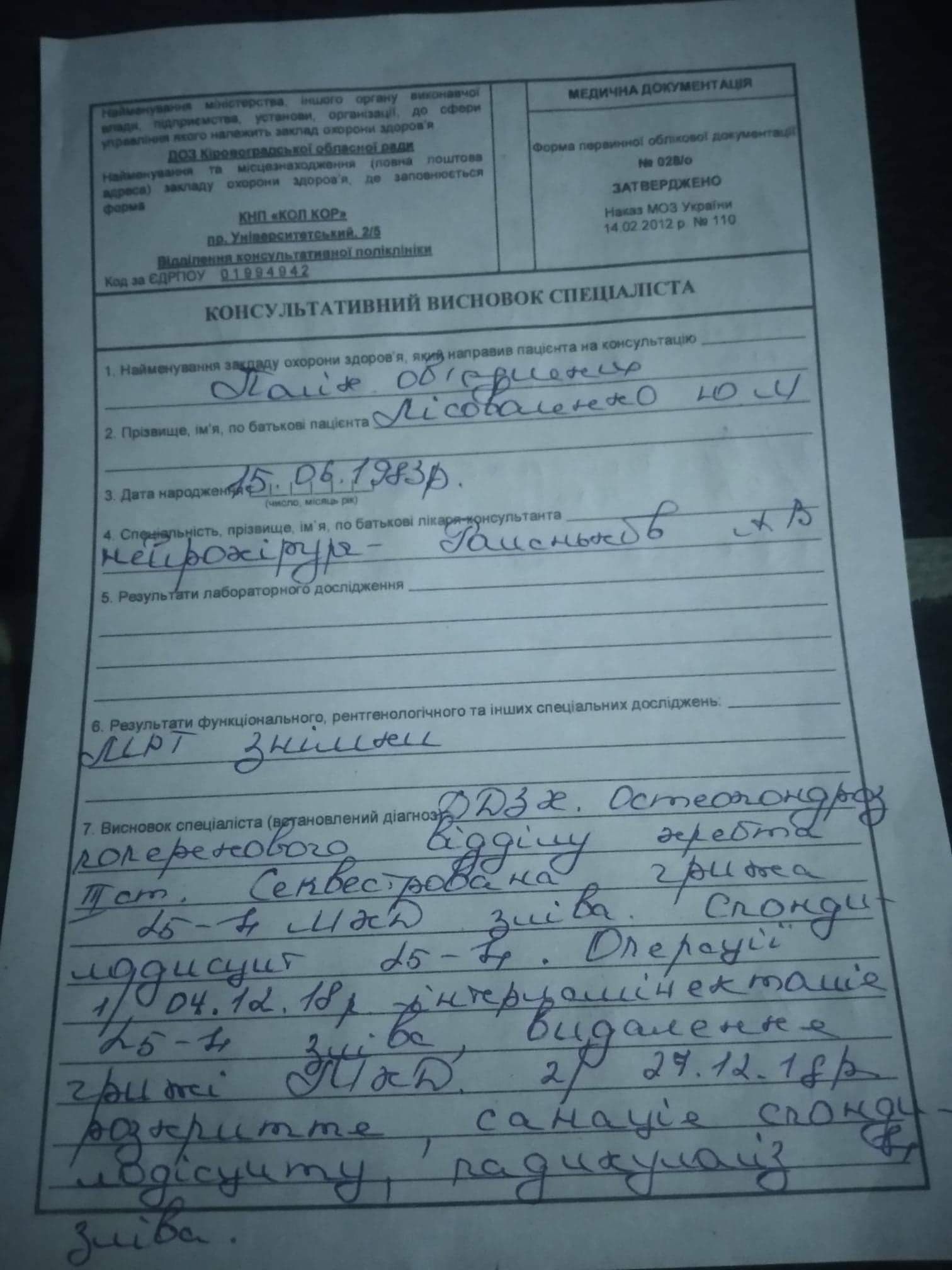 За її словами, батькові сімох дітей необхідна операція на хребті. Харківські лікарі призначили оперативне втручання вже на лютий. У чоловіка внаслідок задавненої хвороби змістився хребет, якщо його не закріпити спеціальними пластинами, він може опинитися в інвалідному візку. Загальна сума операції – 109 тисяч гривень. Наразі не вистачає трохи менше 49-ти.